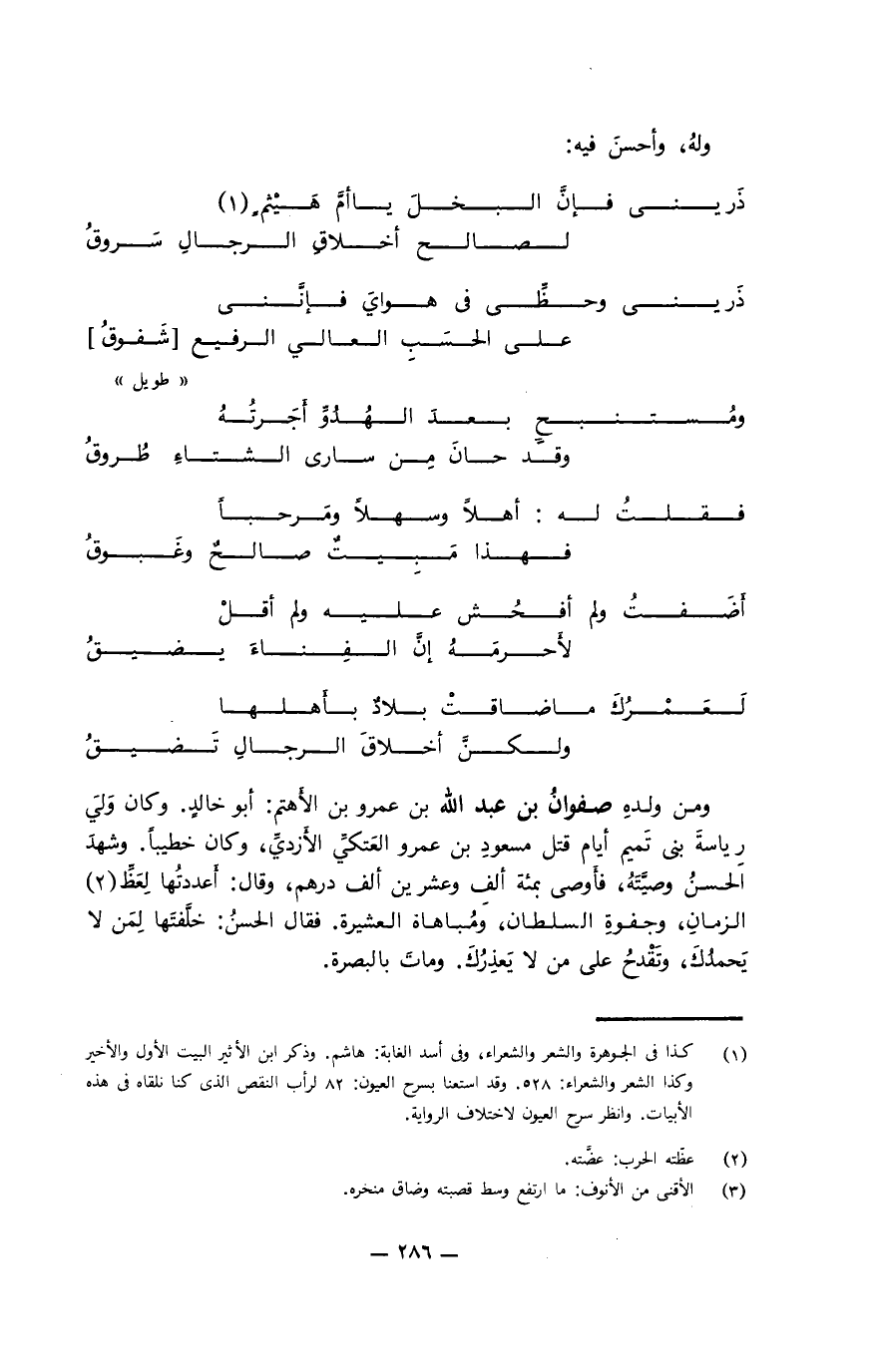 قال المؤلف، غفر الله له: مُحرِّقٌ الذي لبس الأُحيمر بُرديهِ: هو الحرث ابن عمرو بن عدي بن نصر. وفي آله يقول الأسود بن يَعفُرَ: