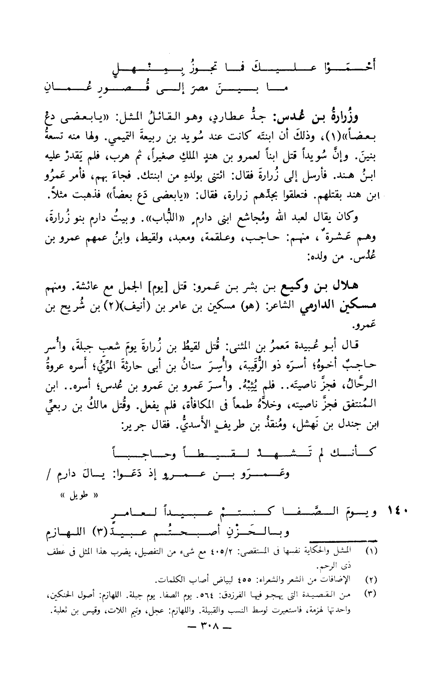 هضمَّتْ بدارِ ضرارٍ ثمَّ قلتُ لها: ... لا بل عليكِ بعبادِ بن مسعودِ