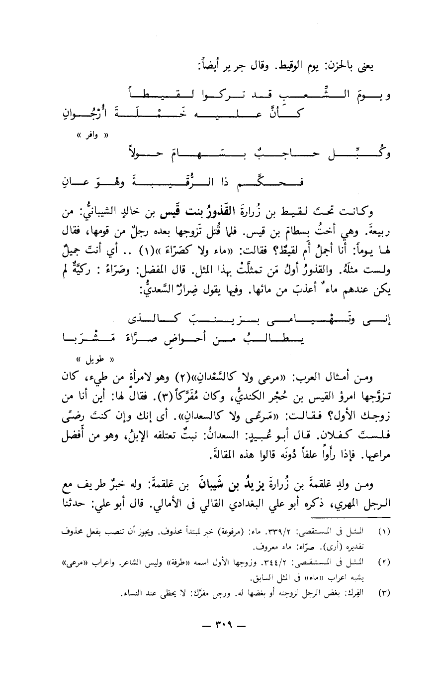 أرضٌ تَخيِّرها لطيب مَقيلها ... كعبُ بنُ مامةَ وابنُ أمِّ دُؤادِ
