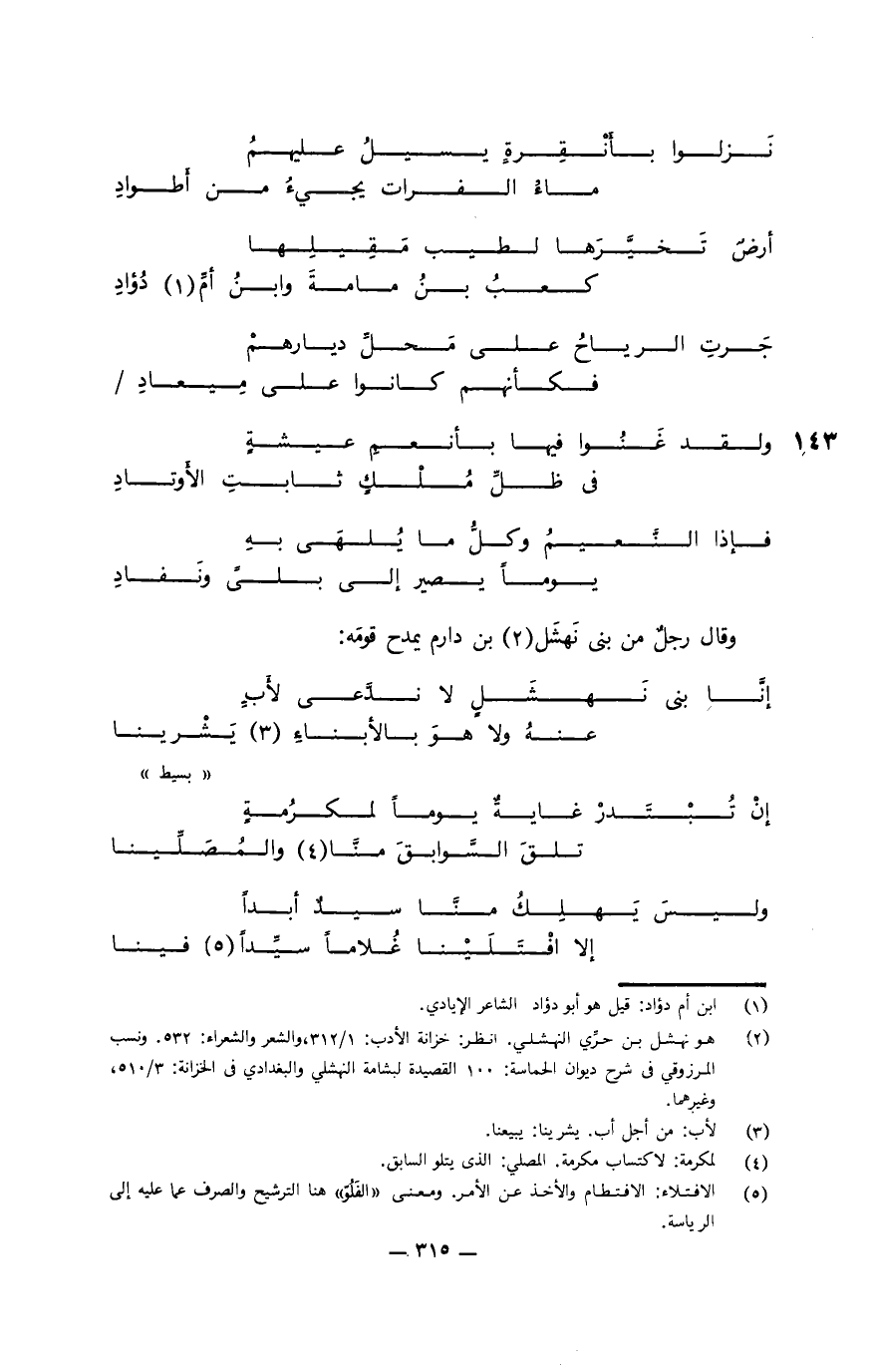 ومن بني كليب بن يربوع جرير بن عطيَّة الخطفي: واسم الخطفي حذيفة ابن بدر بن سلمة بن عوف بن كليب بن يربوع بن حنظلة بن مالك بن زيد مناة بن تميم. وكان من فحولة شعراء الإسلام. ويكنى أبا حزرة بابنته. وأمُّها خالدة بنت سعيد بن أوس بن معاوية من بني كليب بن يربوع، وهي أمُّ حزرة. ولما توفيت رثاها في أول قصيدة مشهورة له طويلة، وناقض الفرزدق في بقيِّتها. وتخيَّرت من الرثاء ما يستحسن، وهو: