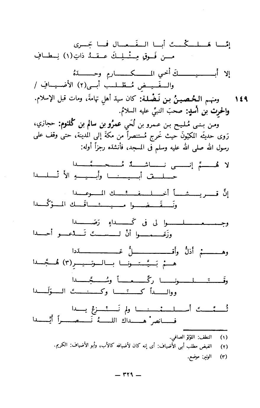 فبشَّرني بدِينِ الحقِّ حتى ... تَبيَّنَتِ الشَّريتةُ للمُنِيبِ