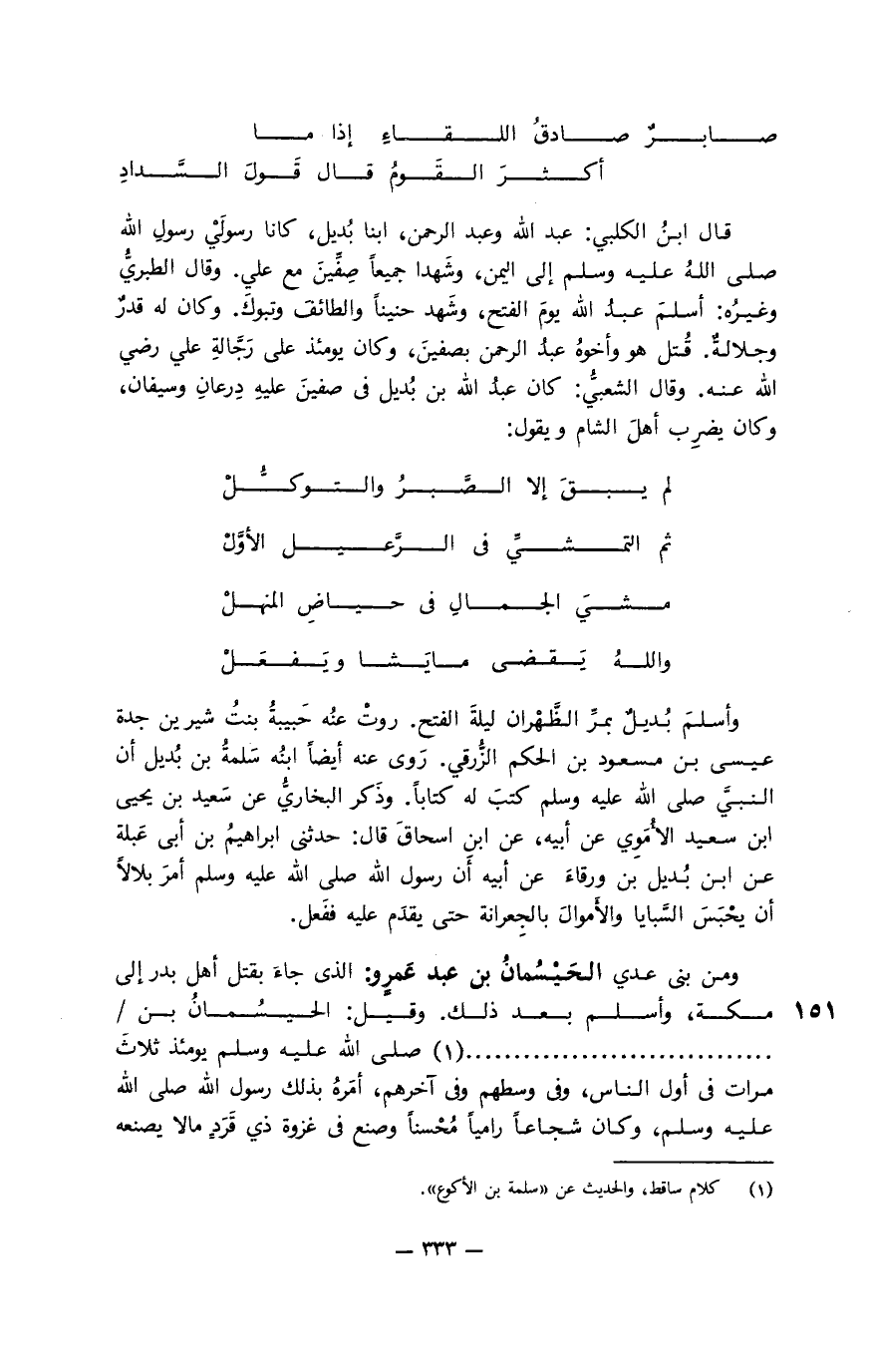 أبزي بدلا منه، وصار إلى ذكرت قصته مع عمر مستوفاة قبل هذا عند ذكر فهر بن مالك، فلذلك اقتضبتها هنا.