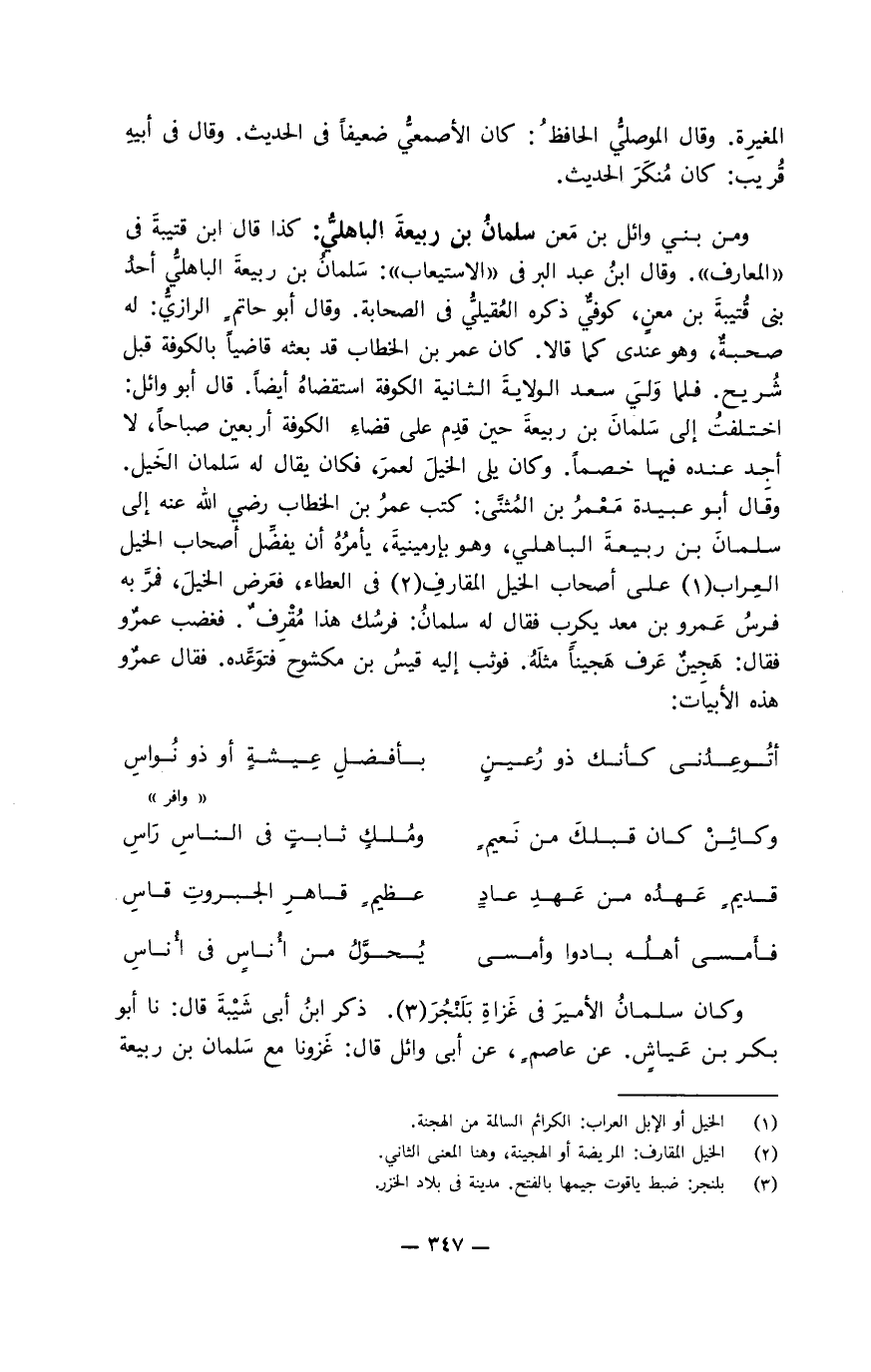 وروي أن أعرابيا لقي رجلا من الحاج فقال له: ممَّن الرجل؟ قال: باهلي. قال: أعيذُك بالله من ذاك. قال: 'ي والله وإني مع ذلك مولى لهم. فأقبل الأعرابيُّ يقبِّل يديه، ويتمسَّح به. فقال الرجل: لم تفعل هذا؟ قال: لأني أثق بالله أنه لم يَبْتِلك بهذا في الُّدنيا إلا وأنت من أهل الجنة.