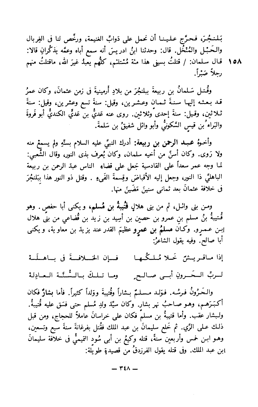 وأمَّا أبو عُلَيم بن معن بن أعصر فكان لبنيه عدد بالجزيرة منهم بكر بن معاوية صاحب ديوان الجند. وكان من قوّاده ابني جعفر.