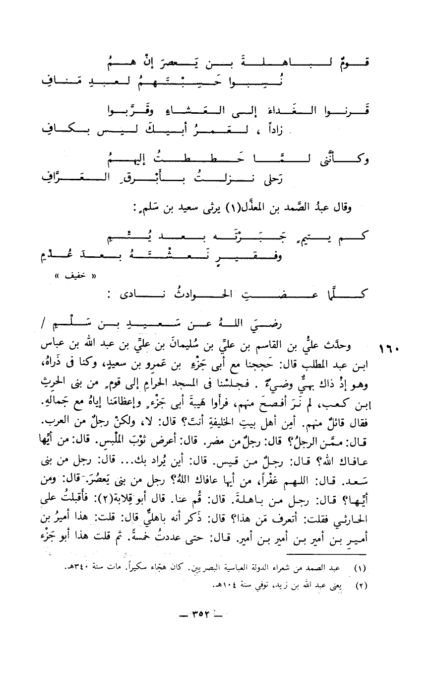 وقال ابن قتيبة في " المعارف " إنَّ عُيينة دخل على عثمان في خلافته، فقال له: يابن عفَّان، سِرْ فينا بسيرة عمر بن الخطاب، فإنه أعطانا فأغنانا وأخشانا فأتقانا. فقال له عثمان: أما والله على ذلك ما كنت بالراضي بسيرة عمر، هل لك إلى العشاء؟ قال: إني صائم. قال: أمُواصل أنت؟ قال: وما الوصال؟ قال: تصوم يومك وليلتك ويومك حتى تُمسيَ. قال: لا ولكنِّي وجدت صيام الليل أيسر عليَّ من صيام النَّهار.
