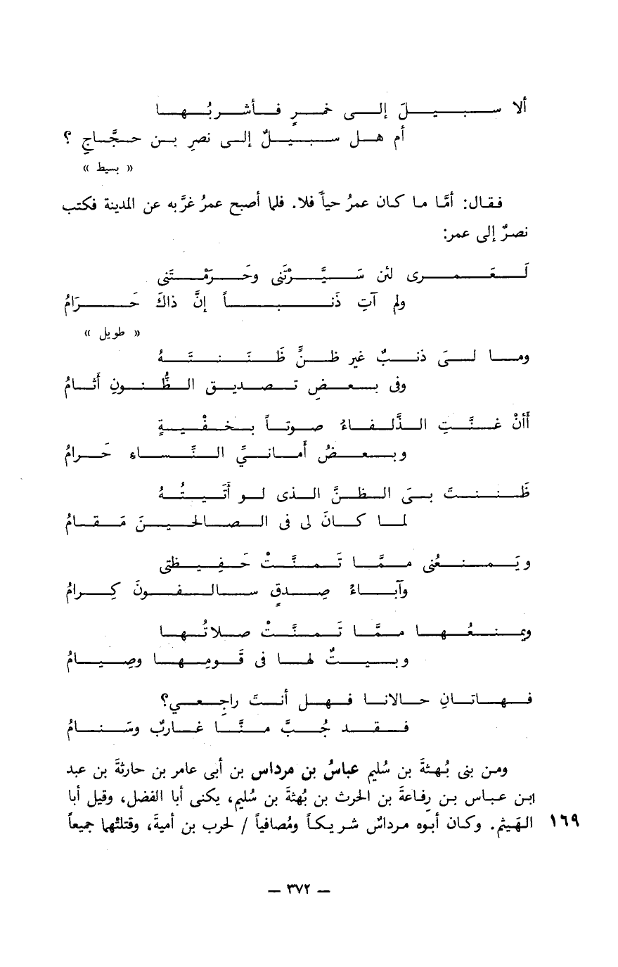 إنْ تكُ خَيلي قد أصيبَ صَميمُها ... فعمداً على عيني تَيمَّمتُ مالكا