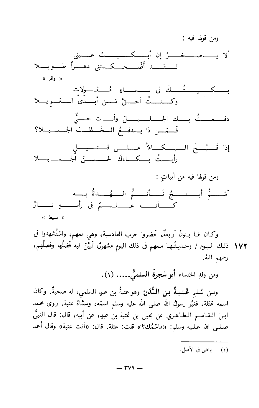 أتلتمسُ السبابَ بنو نُميرٍ ... فقدْ وأبيهمْ لاقَوا سِبابا