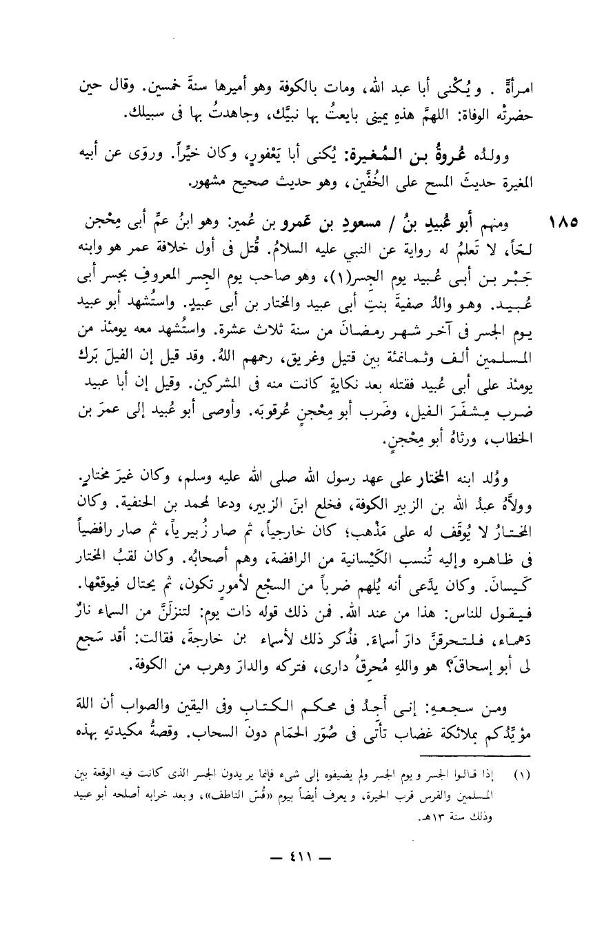 ومنهم أبو محمد عبد الوهاب بن عبد المجيد الثقفي البصري: روى عن أيُّوب السَّختياني وغيره من جلَّة المحدِّثين. وخرج مسلم عن رجل عنه في صحيحه كثيراً. ومات سنة أربع وتسعين ومئة. وفي ابنه عبد المجيد كان يتغزل محمد بن مُناذِر الشاعر، ورثاه بقصيدة طويلة، وهي من حُلو المراثي وحَسَن التأبين. وكان ابن مُناذرٍ فَهِماً مُقدماً، وشاعراً مفْلقاً، وخطيباً مِصقعاً.... قوة كلام العرب بروايته وأدبه وحلاوة كلام المحدثين بعصره ومُشاهدته.