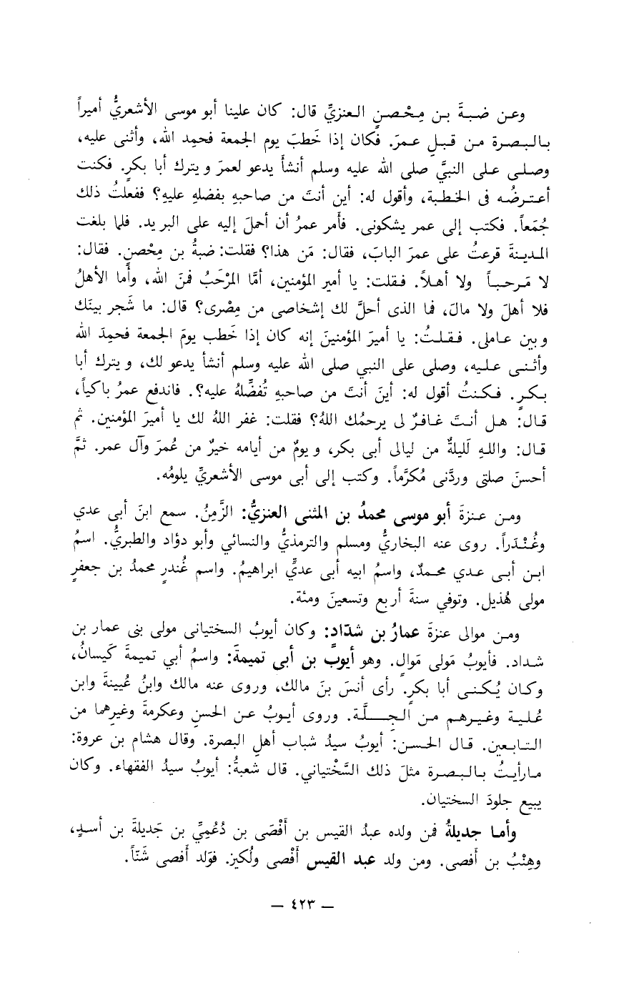 ومن النمر بن قاسط عمرو بن تغلب: وهو من الصحابة يعدُّ في أهل البصرة. روى عنه الحسين بن أبي الحسين قال: لقد قال لي رسول الله صلى الله عليه وسلم كلمة ما أحبُّ أنَّ لي بها حُمرَ النعم؛ أتى رسول الله صلى الله عليه وسلم شيءٌ فأعطى قوماً ومنع قوماً، وقال: " إنا نعطي قوماً نخشى هَلَعَهُم وجزعهم، ونكل أقواماً.... ". وإنما سُمِّي الضَّحيان لأنه كان يجلس لهم في وقت الضحى، فيقضي بينهم، وقد رَبَع ربيعة أربعين سنةً.