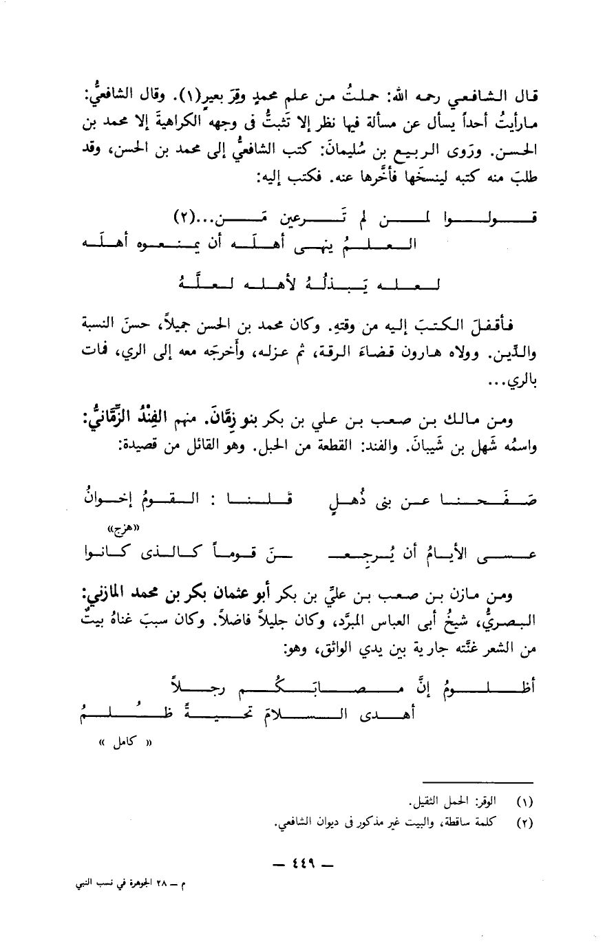 منهم الإمام الرِّضي أبو عبد الله أحمد بن محمد بن حَنبل بن هلال الشَّيبانيُّ: من بني شيبان، من ربيعة، من أنفسهم. وضربه المعتصم بمحضر ابن أبي دُؤاد بعدما خَصم ابن أبي دؤاد وأفحمه، كما صنع عبد العزيز بن يحيى