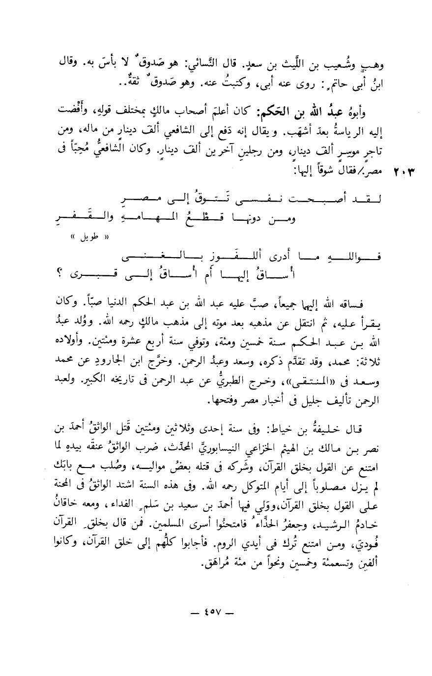 حدثنا أبو عبد الله محمد بن مخلد العطار قال: نا أبو دؤاد السَّجستاني قال: سمعت إسحاق بن راهويه وهنَّاد بن السَّرِّ وعبد الأعلى بن حماد وعبيد الله بن عمر وحكيم بن سيف الرِّقِّيَّ وأيُّوب بن محمد وسَوَّار بن عبد الله والربيع بن سليمان صاحب الشافعيِّ وعبد الوهَّاب بن عبد الحكم ومحمد بن الصبَّاح وعثمان بن أبي شيبة ومحمد بن بكار بن الريَّان وأحمد بن حوَّاس الحنفيَّ ووهب بن بقيَّة ومن لا أحصينهم من علمائنا. كلُّ هؤلاء سمعتهم يقولون: القرآن كلامُ الله ليس بمخلوق. وبعضهم قال: غيرُ مخلوق.