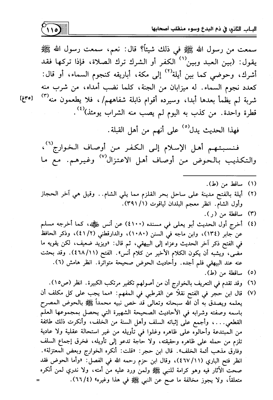 فَنِسْبَتُهُمْ أَهْلَ الْإِسْلَامِ إِلَى الْكُفْرِ مِنْ أَوْصَافِ الْخَوَارِجِ (¬6)، وَالتَّكْذِيبُ بِالْحَوْضِ مِنْ أَوْصَافِ أَهْلِ الِاعْتِزَالِ (¬7) وَغَيْرِهِمْ. مَعَ ما