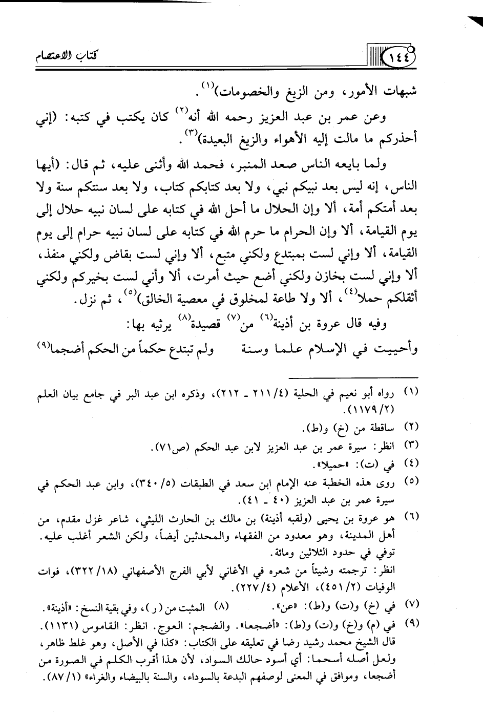 (¬5) روى هذه الخطبة عنه الإمام ابن سعد في الطبقات (5/ 340)، وابن عبد الحكم في سيرة عمر بن عبد العزيز (40 ـ 41).