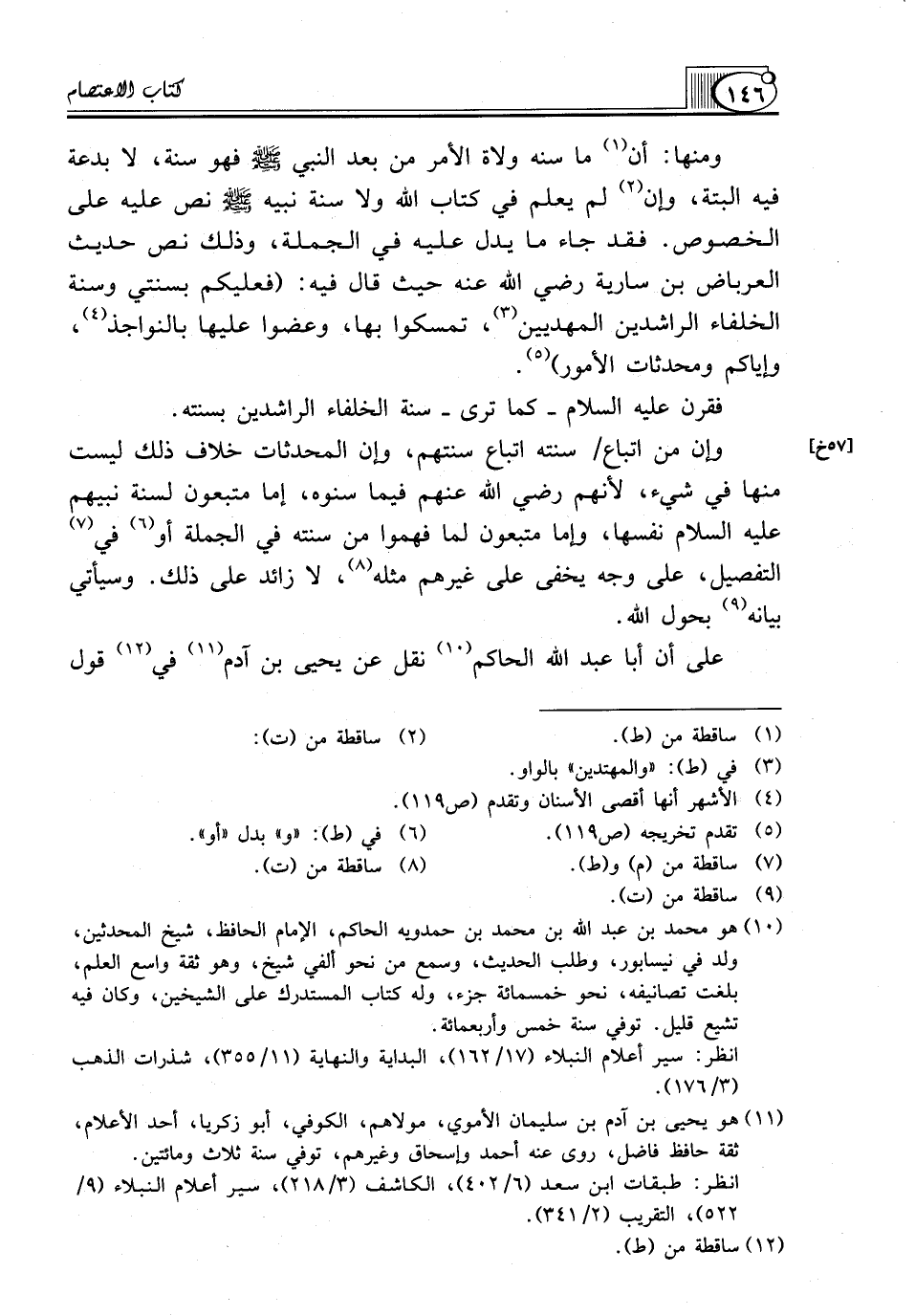 (¬10) هو محمد بن عبد الله بن محمد بن حمدويه الحاكم، الإمام الحافظ، شيخ المحدثين، ولد في نيسابور، وطلب الحديث، وسمع من نحو ألفي شيخ، وهو ثقة واسع العلم، بلغت تصانيفه، نحو خمس مئة جزء، وله كتاب المستدرك على الشيخين، وكان فيه تشيع قليل. توفي سنة خمس وأربعمائة.