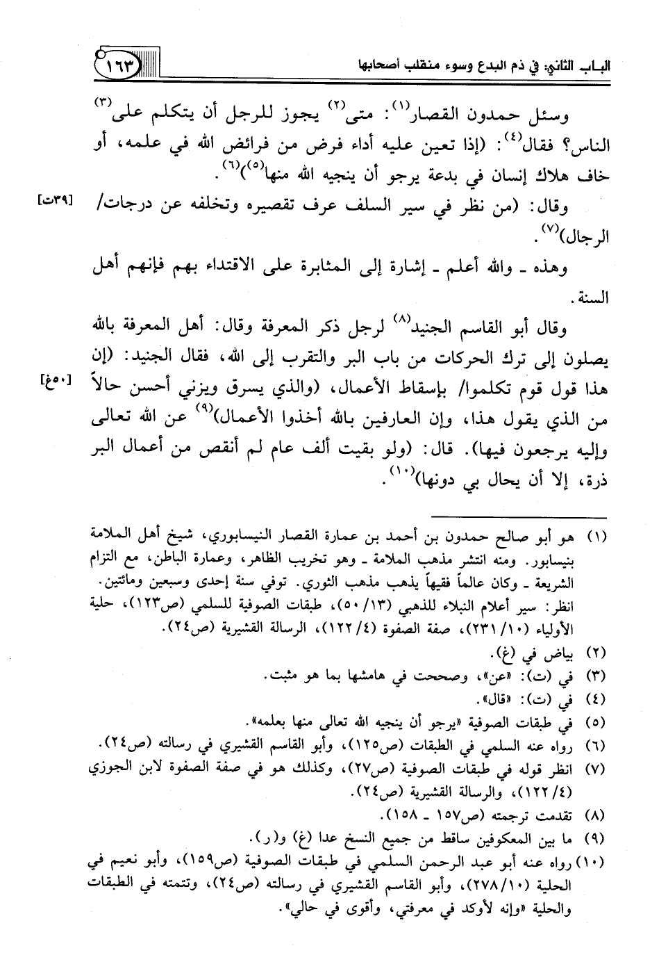 (¬7) انظر قوله في طبقات الصوفية (ص27)، وكذلك هو في صفة الصفوة لابن الجوزي (4/ 122)، والرسالة القشيرية (ص24).