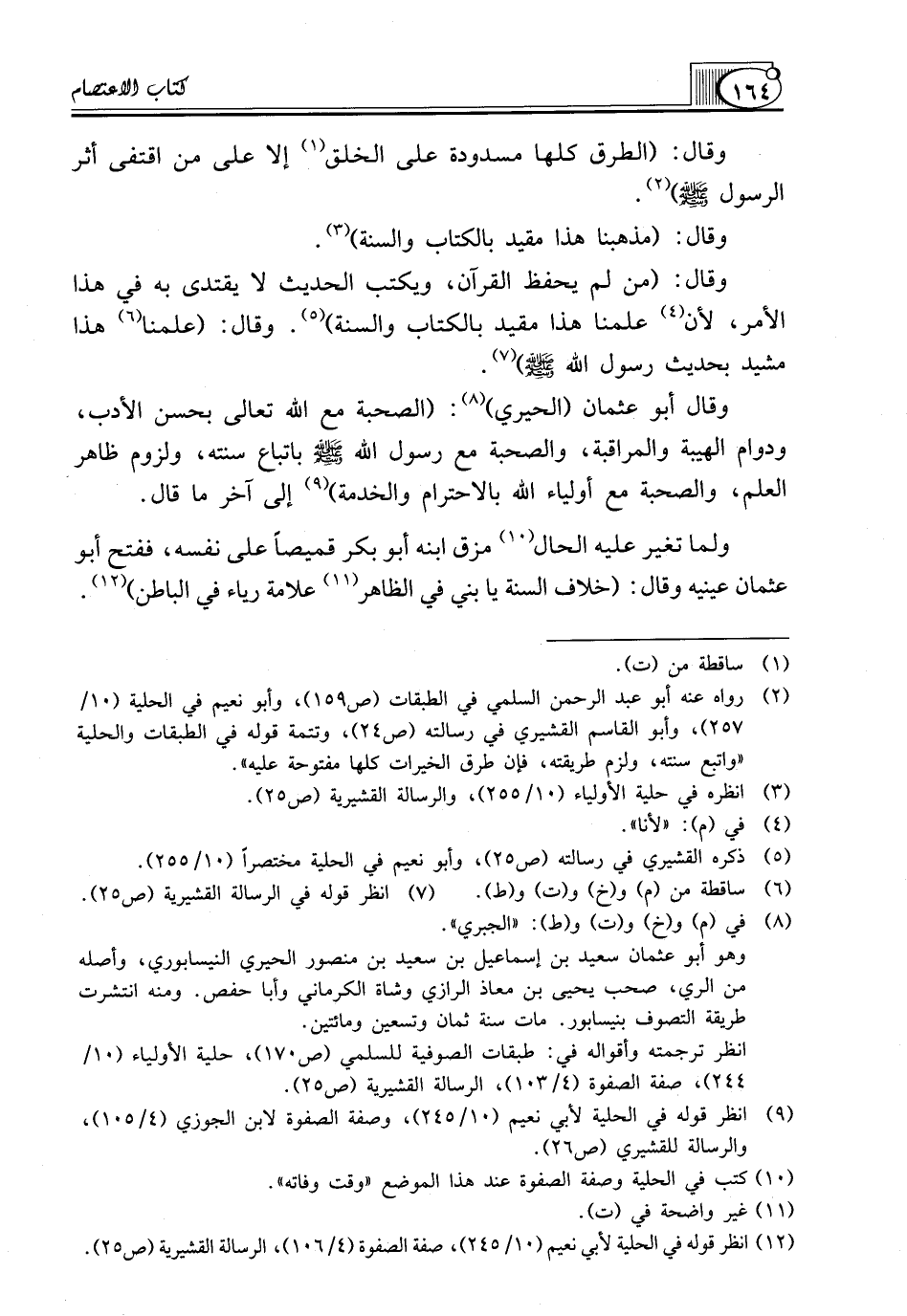 (¬12) انظر قوله في الحلية لأبي نعيم (10/ 245)، صفة الصفوة (4/ 106)، الرسالة القشيرية (ص25).