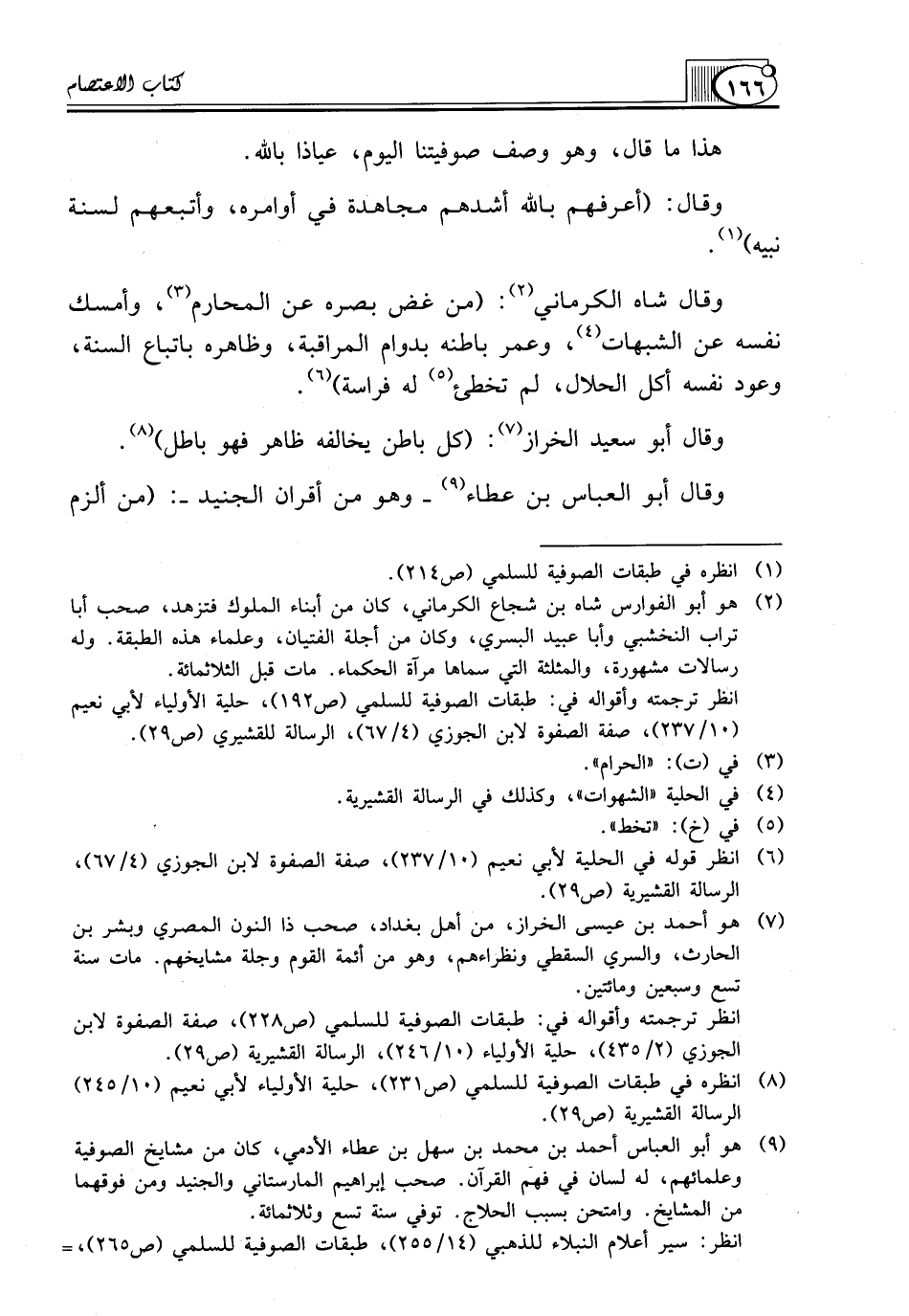 (¬6) انظر قوله في الحلية لأبي نعيم (10/ 237)، صفة الصفوة لابن الجوزي (4/ 67)، الرسالة القشيرية (ص29).