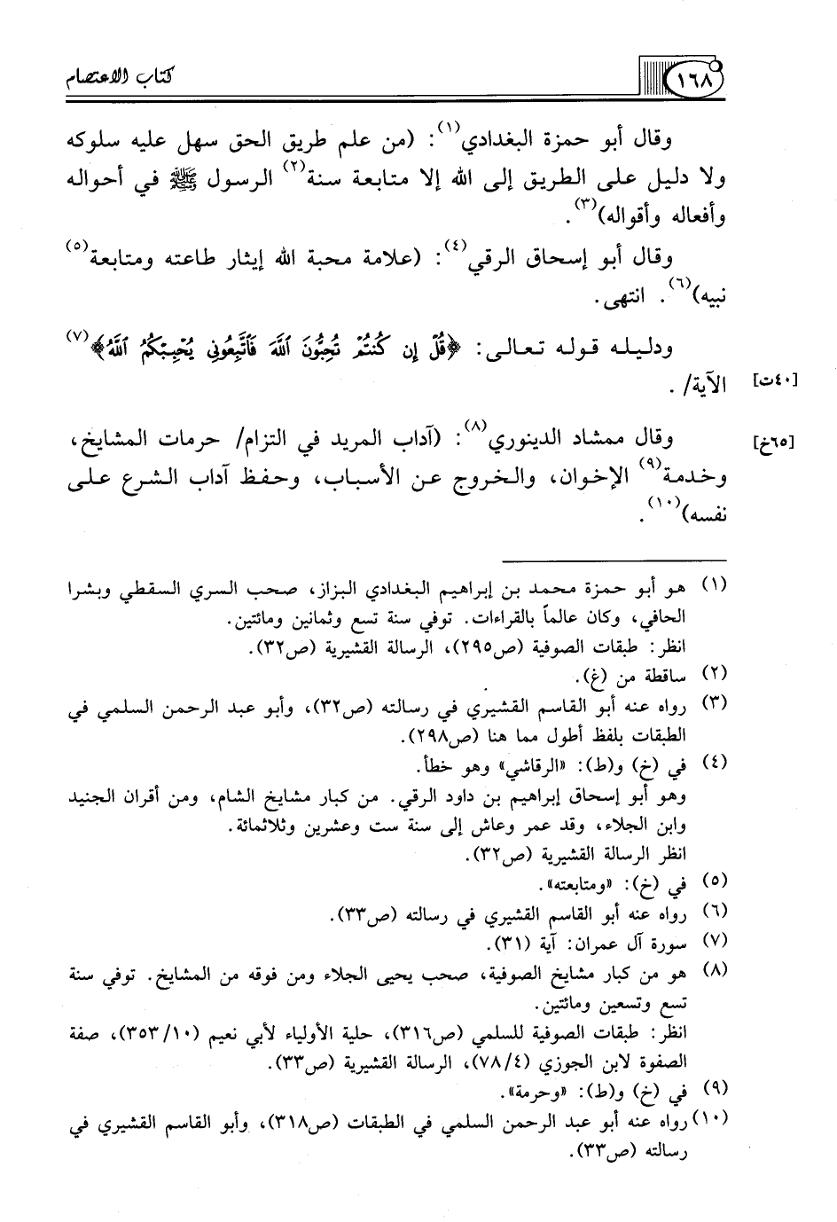 (¬10) رواه عنه أبو عبد الرحمن السلمي في الطبقات (ص318)، وأبو القاسم القشيري في رسالته (ص33).
