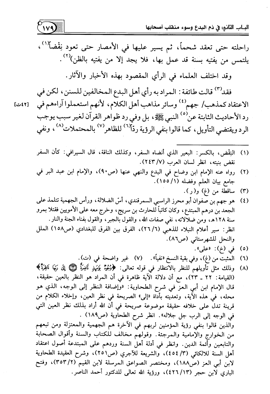 (¬4) هو جهم بن صفوان أبو محرز الراسبي السمرقندي، أسّ الضلالة، ورأس الجهمية تتلمذ على الجعد بن درهم المبتدع، وكان كاتباً للحارث بن سريج، وخرج معه على الأمويين فقتلا بمرو سنة 128هـ، ومن ضلالاته، نفي صفات الله، والقول بالجبر، والقول بفناء الجنة والنار.