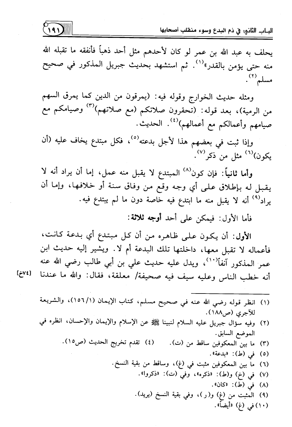 (¬1) انظر قوله رضي الله عنه في صحيح مسلم، كتاب الإيمان (1/ 156)، والشريعة للآجري (ص188).
