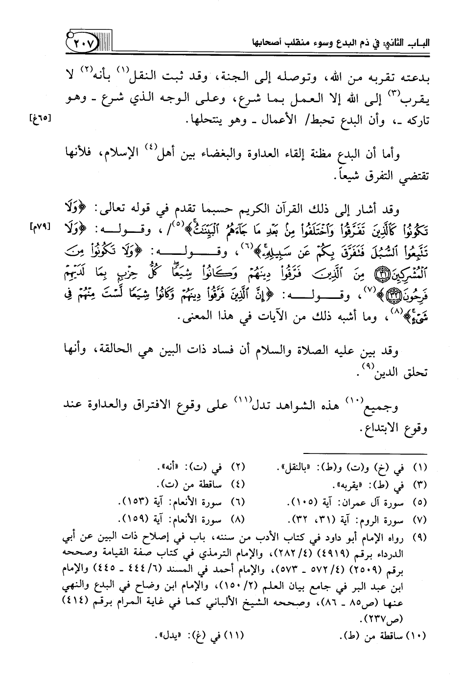 وَجَمِيعُ (¬10) هَذِهِ الشَّوَاهِدِ تَدُلُّ (¬11) عَلَى وُقُوعِ الافتراق والعداوة عند وقوع الابتداع.