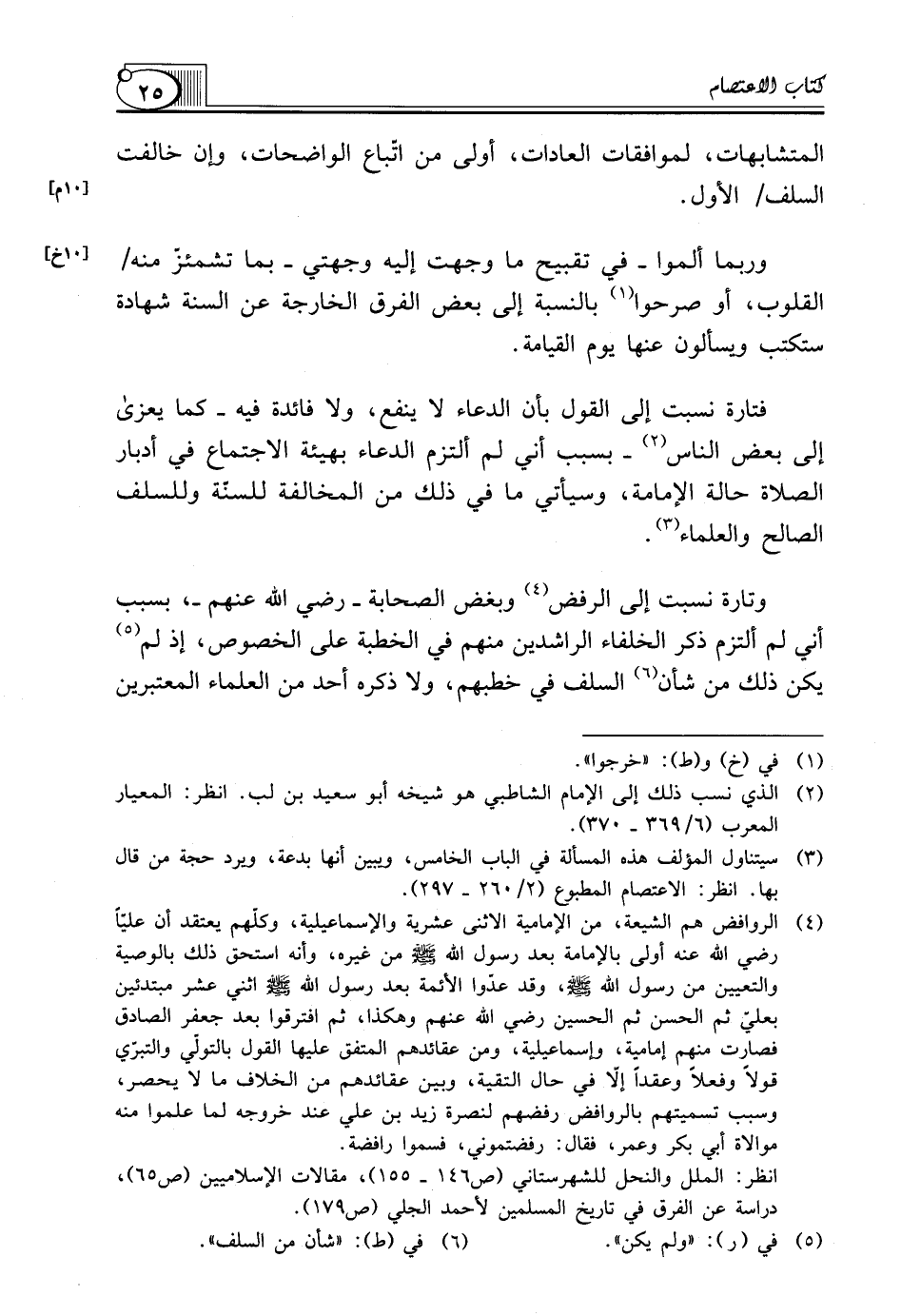 (¬3) سيتناول المؤلف هذه المسألة في الباب الخامس، ويبين أنها بدعة، ويرد حجة من قال بها. انظر: الاعتصام المطبوع (1/ 349 ـ 368، 2/ 3 ـ 6).