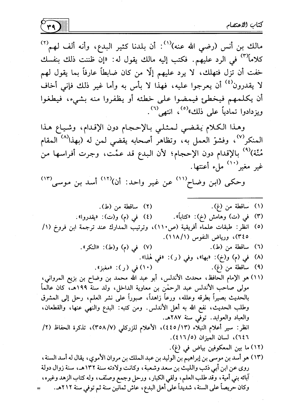 وَحَكَى (ابْنُ وَضَّاحٍ (¬11) عَنْ غَيْرِ وَاحِدٍ: أَنَّ) (¬12) أَسَدَ بْنَ مُوسَى (¬13)