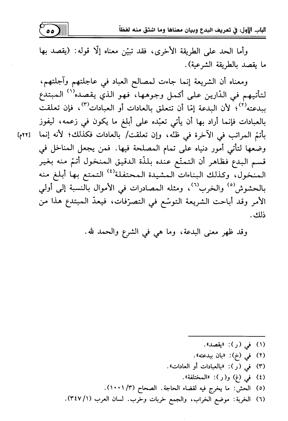 وَمَعْنَاهُ أَنَّ الشَّرِيعَةَ إِنَّمَا جَاءَتْ لِمَصَالِحِ الْعِبَادِ فِي عَاجِلَتِهِمْ وَآجِلَتِهِمْ، لِتَأْتِيَهُمْ فِي الدَّارَيْنِ عَلَى أَكْمَلِ وُجُوهِهَا، فَهُوَ الَّذِي يَقْصِدُهُ (¬1) الْمُبْتَدِعُ بِبِدْعَتِهِ (¬2)؛ لِأَنَّ الْبِدْعَةَ إِمَّا أَنْ تَتَعَلَّقَ بِالْعَادَاتِ أَوِ الْعِبَادَاتِ (¬3)، فَإِنْ تَعَلَّقَتْ بِالْعِبَادَاتِ فَإِنَّمَا أَرَادَ بِهَا أَنْ يَأْتِيَ تَعَبُّدَهُ عَلَى أَبْلَغِ مَا يَكُونُ فِي زَعْمِهِ، لِيَفُوزَ بِأَتَمِّ الْمَرَاتِبِ فِي الْآخِرَةِ فِي ظَنِّهِ، وَإِنْ تَعَلَّقَتْ بِالْعَادَاتِ فَكَذَلِكَ؛ لِأَنَّهُ إِنَّمَا وَضَعَهَا لِتَأْتِيَ أُمُورُ دُنْيَاهُ عَلَى تَمَامِ الْمَصْلَحَةِ فِيهَا. فَمَنْ يَجْعَلُ الْمَنَاخِلَ فِي قِسْمِ الْبِدَعِ فَظَاهِرٌ أَنَّ التَّمَتُّعَ عِنْدَهُ بِلَذَّةِ الدَّقِيقِ الْمَنْخُولِ أَتَمُّ مِنْهُ بِغَيْرِ الْمَنْخُولِ، وَكَذَلِكَ الْبِنَاءَاتُ الْمُشَيَّدَةُ الْمُحْتَفِلَةُ (¬4) التَّمَتُّعُ بِهَا أَبْلَغُ مِنْهُ بِالْحُشُوشِ (¬5) وَالْخَرِبِ (¬6)، وَمِثْلُهُ الْمُصَادَرَاتُ فِي الْأَمْوَالِ بِالنِّسْبَةِ إِلَى أُولِي الْأَمْرِ وَقَدْ أَبَاحَتِ الشَّرِيعَةُ التَّوَسُّعَ فِي التَّصَرُّفَاتِ، فَيَعُدُّ الْمُبْتَدِعُ هَذَا مِنْ ذَلِكَ.
