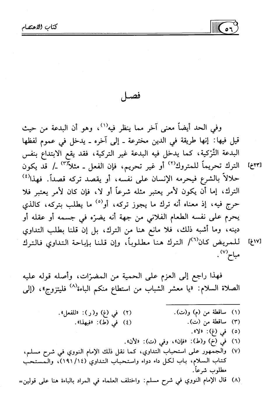 فَهَذَا رَاجِعٌ إِلَى الْعَزْمِ عَلَى الْحَمِيَّةِ مِنَ الْمُضِرَّاتِ، وأصله قوله عليه الصلاة السلام: "يَا مَعْشَرَ الشَّبَابِ مَنِ اسْتَطَاعَ مِنْكُمُ الْبَاءَةَ (¬8) فليتزوج"، (إلى