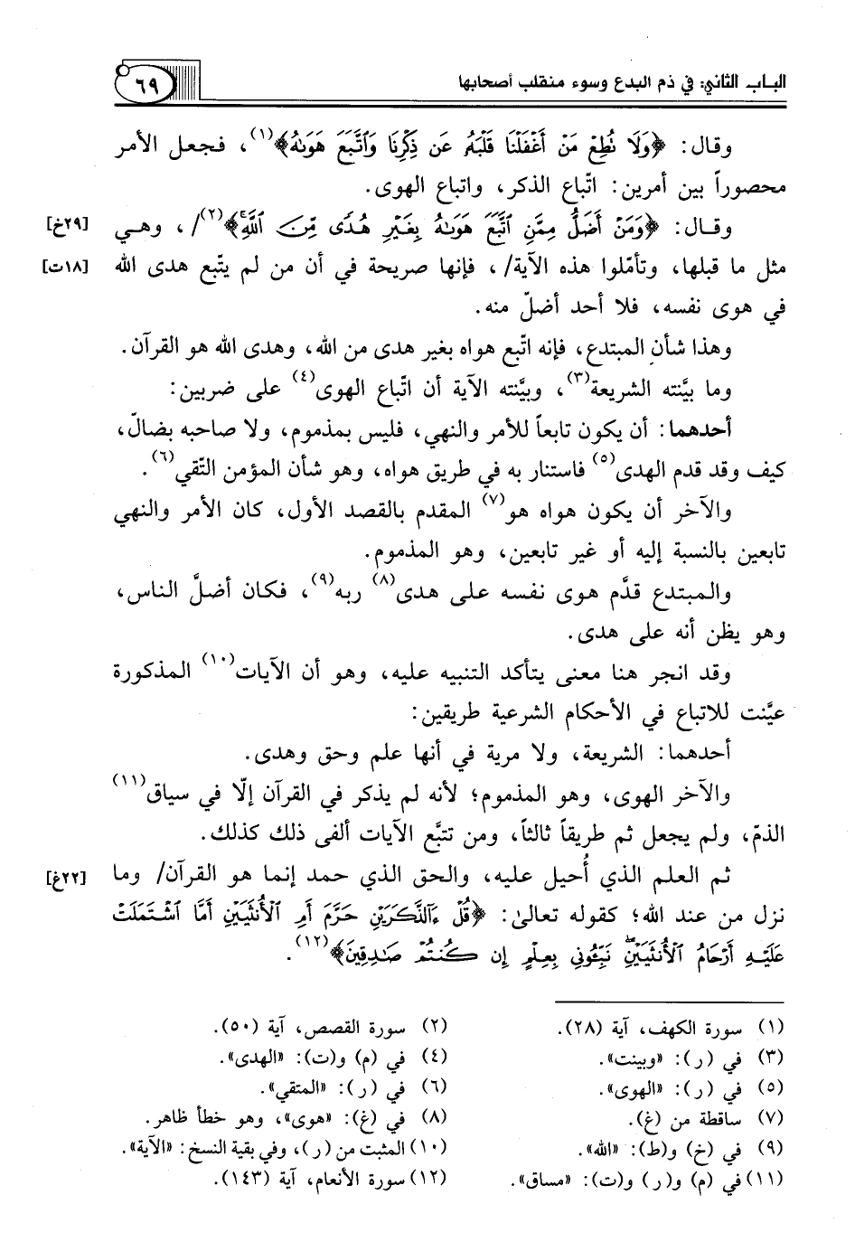 وَالْمُبْتَدِعُ قدَّم هَوَى نَفْسِهِ عَلَى هُدَى (¬8) رَبِّهِ (¬9)، فَكَانَ أضلَّ النَّاسِ، وَهُوَ يَظُنُّ أَنَّهُ عَلَى هُدًى.