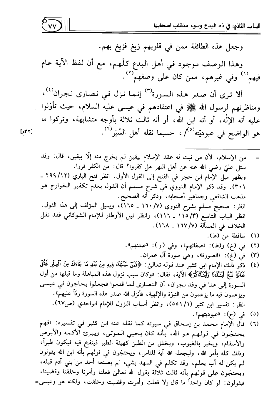 أَلَا تَرَى أَنَّ صَدْرَ هَذِهِ السُّورَةِ (¬3) إِنَّمَا نَزَلَ فِي نَصَارَى نَجْرَانَ (¬4)، وَمُنَاظَرَتِهِمْ لِرَسُولِ اللَّهِ صَلَّى اللَّهُ عَلَيْهِ وَسَلَّمَ فِي اعْتِقَادِهِمْ فِي عِيسَى عَلَيْهِ السَّلَامُ، حَيْثُ تَأَوَّلُوا عَلَيْهِ أَنَّهُ الْإِلَهُ، أَوْ أَنَّهُ ابْنُ اللَّهِ، أَوْ أَنَّهُ ثَالِثُ ثَلَاثَةٍ بِأَوْجُهٍ مُتَشَابِهَةٍ، وَتَرَكُوا مَا هُوَ الْوَاضِحُ فِي عُبُودِيَّتِهِ (¬5)، حَسْبَمَا نَقَلَهُ أَهْلُ السِّيَر (¬6).