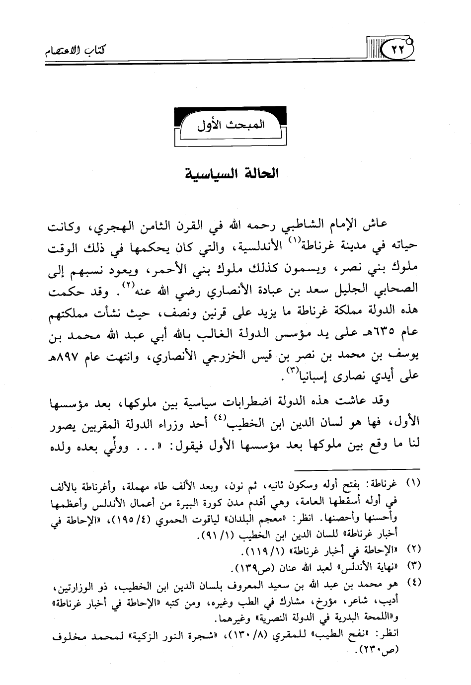 (¬4) هو محمد بن عبد الله بن سعيد المعروف بلسان الدين ابن الخطيب، ذو الوزارتين، أديب، شاعر، مؤرخ، مشارك في الطب وغيره، ومن كتبه "الإحاطة في أخبار غرناطة" و"اللمحة البدرية في الدولة النصرية" وغيرهما.