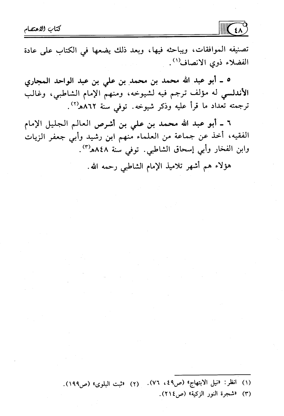 تصنيفه الموافقات، ويباحثه فيها، وبعد ذلك يضعها في الكتاب على عادة الفضلاء ذوي الانصاف (¬1).