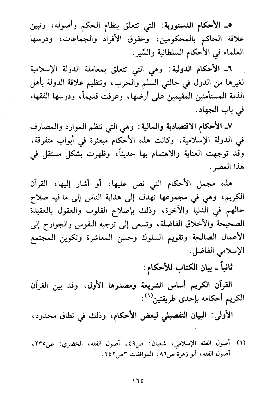 ٥ - الأحكام الدستورية: التي تتعلق بنظام الحكم وأصوله، وتبين علاقة الحاكم بالمحكومين، وحقوق الأفراد والجماعات، ودرسها العلماء في الأحكام السلطانية والسِّير.