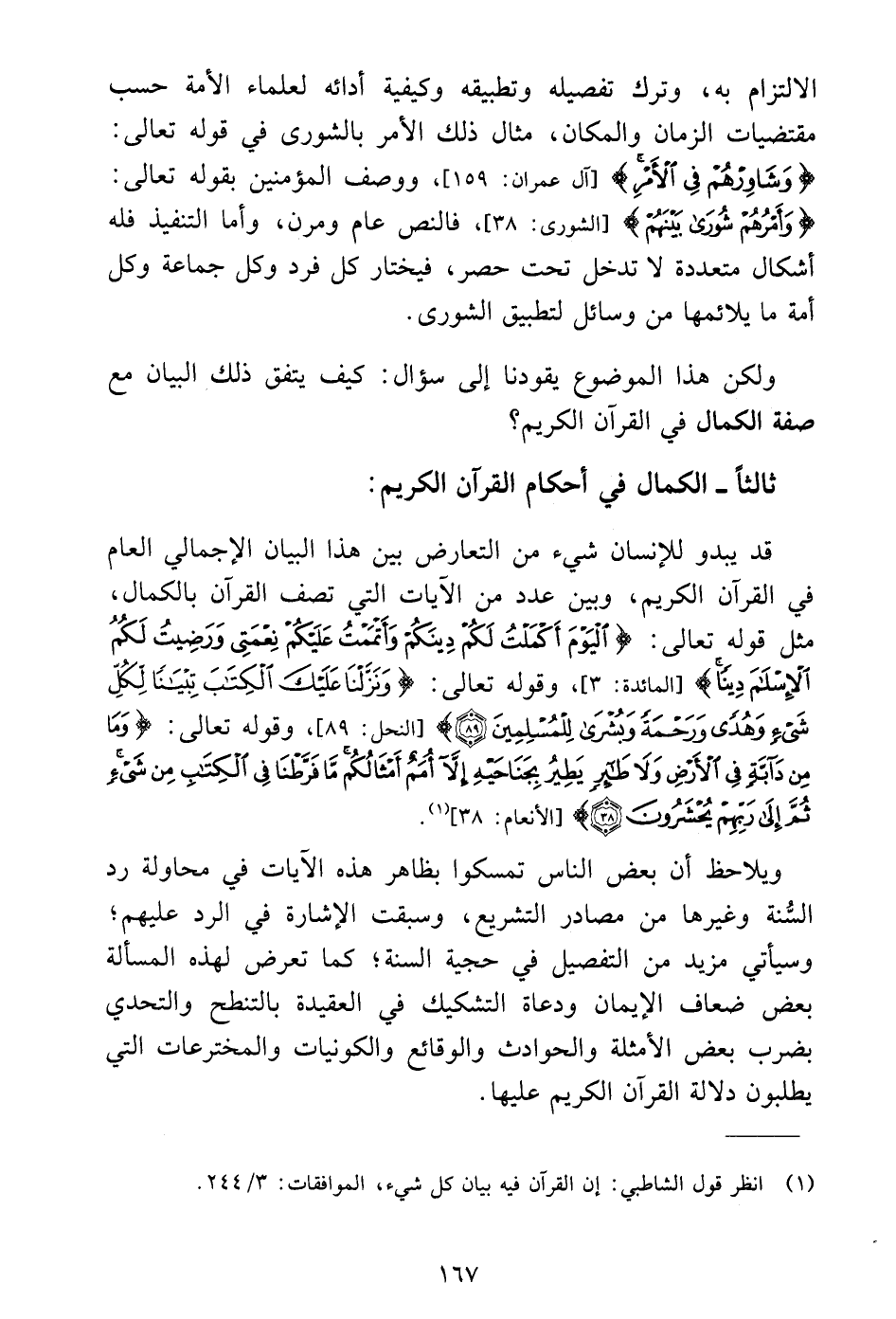 (١) انظر قول الشاطبي: إن القرآن فيه بيان كل شيء، الموافقات: ٣/ ٢٤٤.