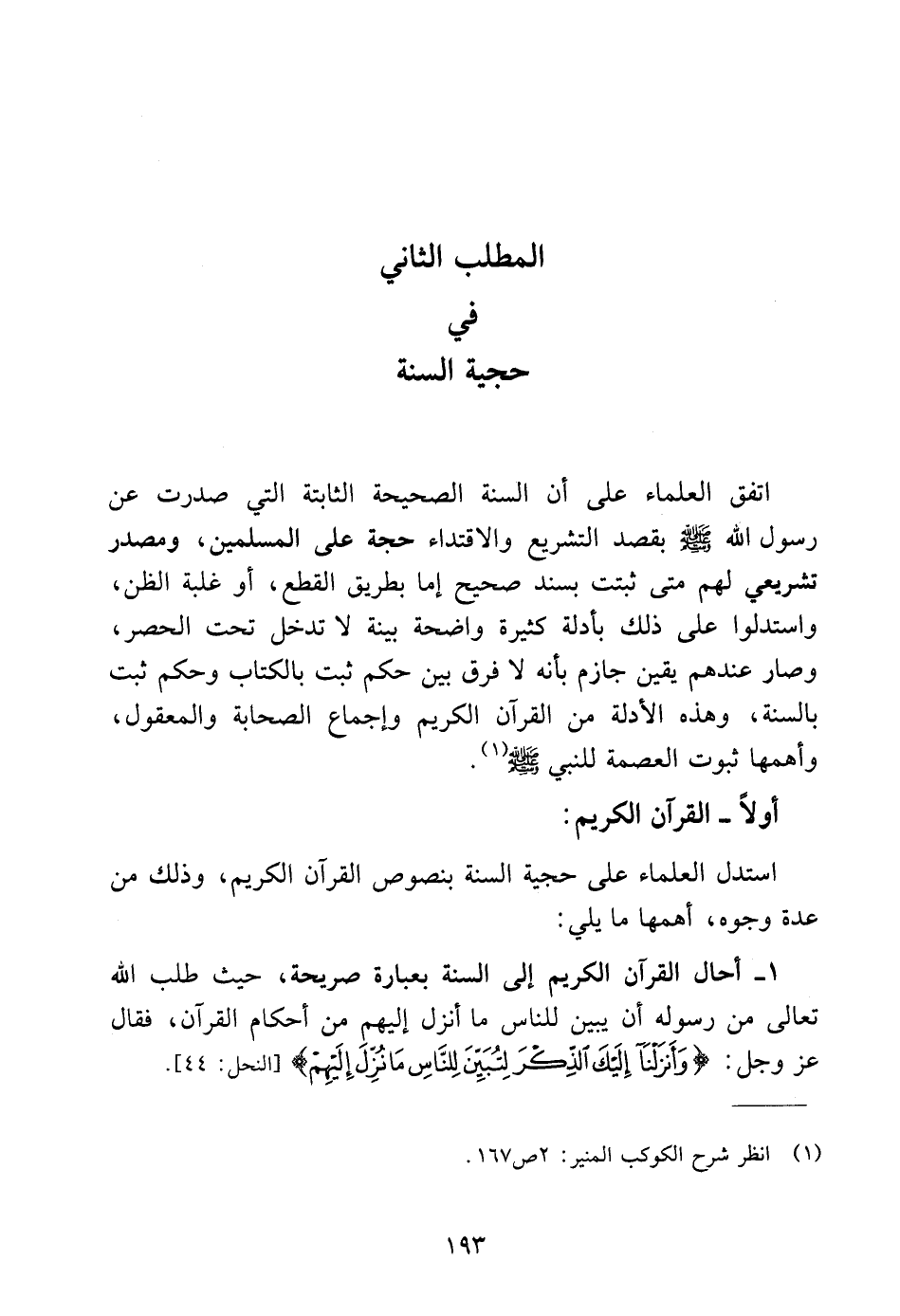 المطلب الثاني في حجية السنة