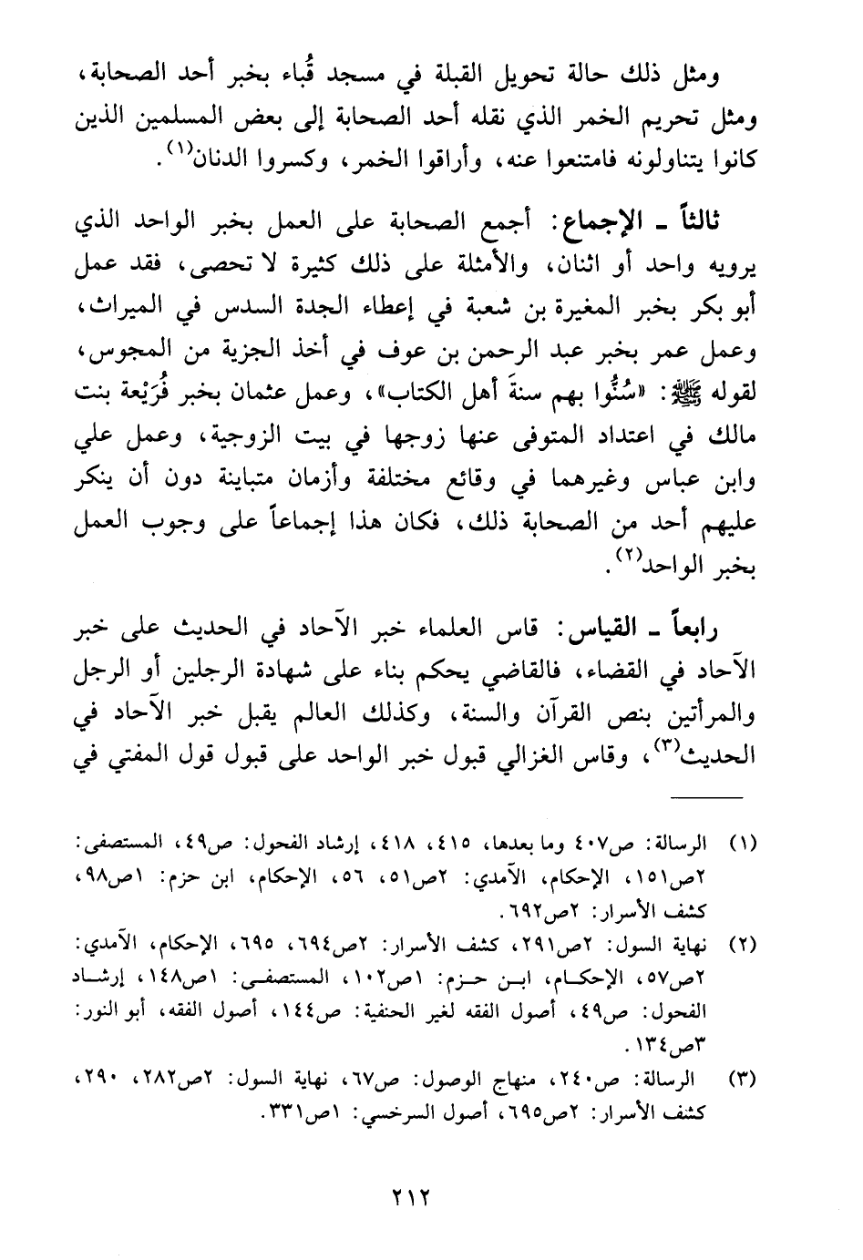 (٣) الرسالة: ص ٢٤٠، منهاج الوصول: ص ٦٧، نهاية السول: ٢ ص ٢٨٢، ٢٩٠، كشف الأسرار: ٢ ص ٦٩٥، أصول السرخسي: ١ ص ٣٣١.