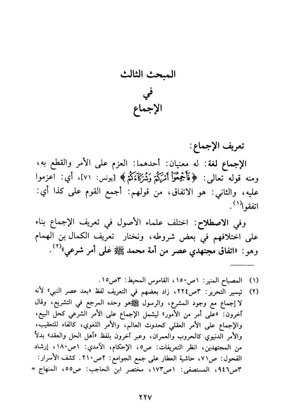 المبحث الثالث في الإجماع