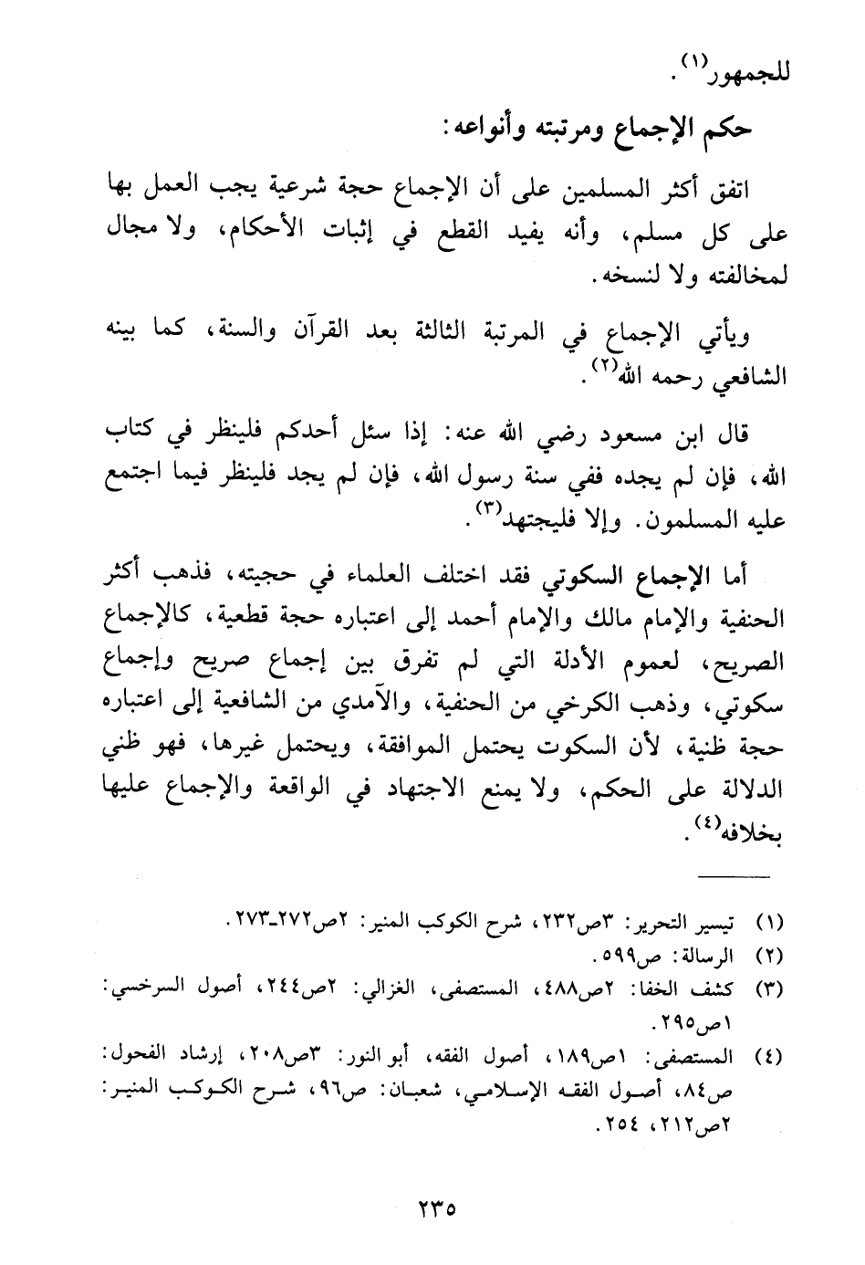(٤) المستصفى: ١ ص ١٨٩، أصول الفقه، أبو النور: ٣ ص ٢٠٨، إرشاد الفحول: ص ٨٤، أصول الفقه الإِسلامي، شعبان: ص ٩٦، شرح الكوكب المنير: ٢ ص ٢١٢، ٢٥٤.