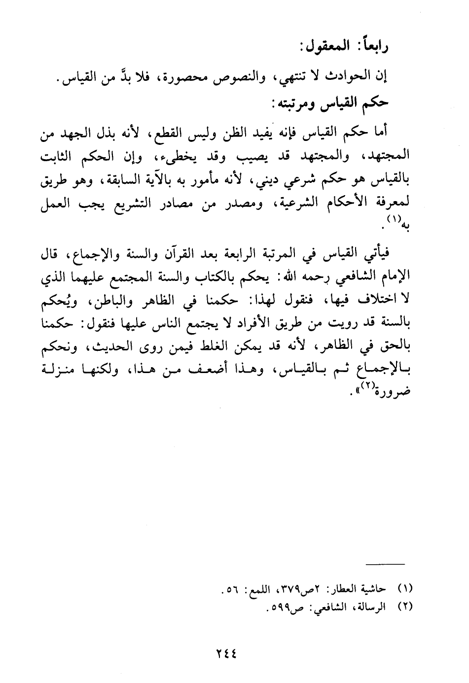 (٢) الرسالة، الشافعي: ص ٥٩٩.