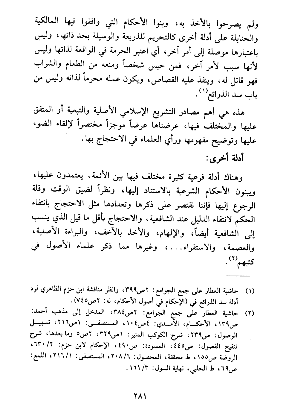 (١) حاشية العطار على جمع الجوامع: ٢ ص ٣٩٩، وانظر مناقشة ابن حزم الظاهري لرد أدلة سد الذرائع في (الإحكام في أصول الأحكام، له: ٢ ص ٧٤٥).