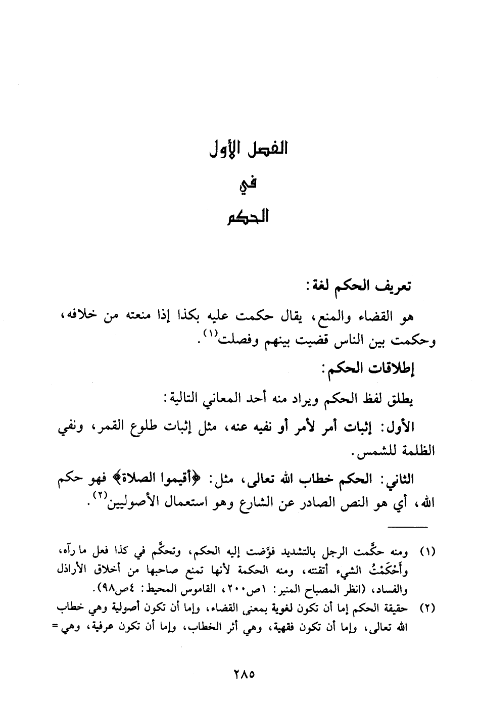 (٢) حقيقة الحكم إما أن تكون لغوية بمعني، القضاء، وإما أن تكون أصولية وهي خطاب اللَّه تعالى، وإما أن تكون فقهية، وهي أثر الخطاب، وإما أن تكون عرفية، وهي =