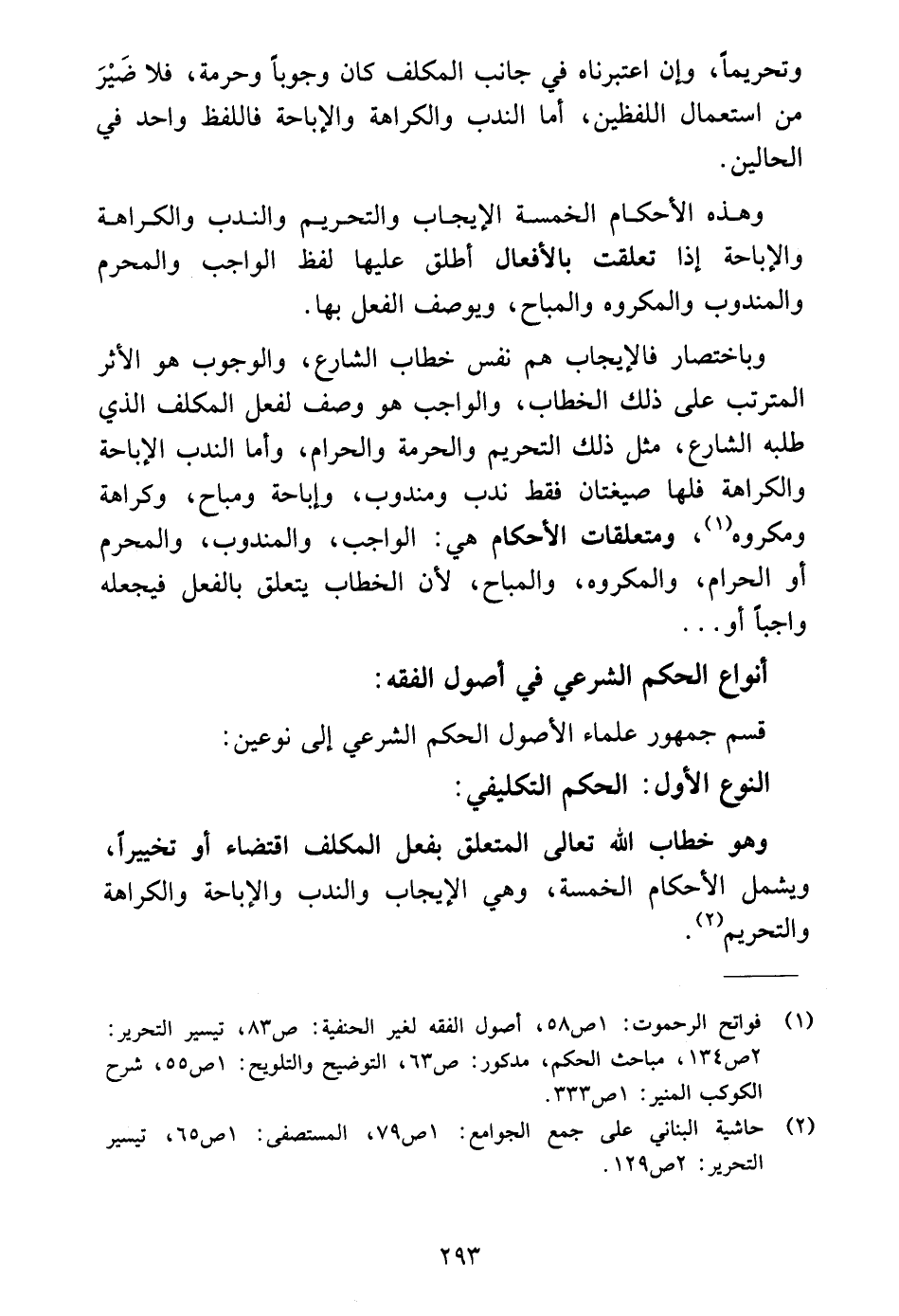 (١) فواتح الرحموت: ١ ص ٥٨، أصول الفقه لغير الحنفية: ص ٨٣، تيسير التحرير: ٢ ص ١٣٤، مباحث الحكم، مدكور: ص ٦٣، التوضيح والتلويح: ١ ص ٥٥، شرح الكوكب المنير: ١ ص ٣٣٣.