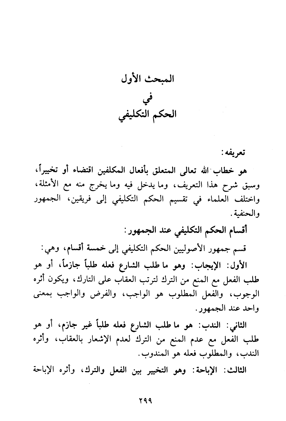 قسم جمهور الأصوليين الحكم التكليفي إلى خمسة أقسام، وهي: