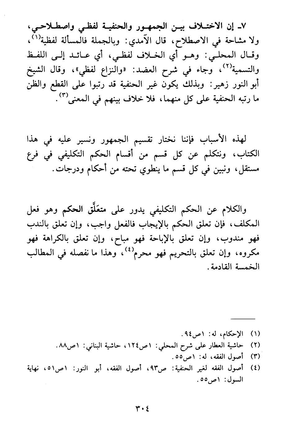 (٤) أصول الفقه لغير الحنفية: ص ٩٣، أصول الفقه، أبو النور: ١ ص ٥١، نهاية السول: ١ ص ٥٥.