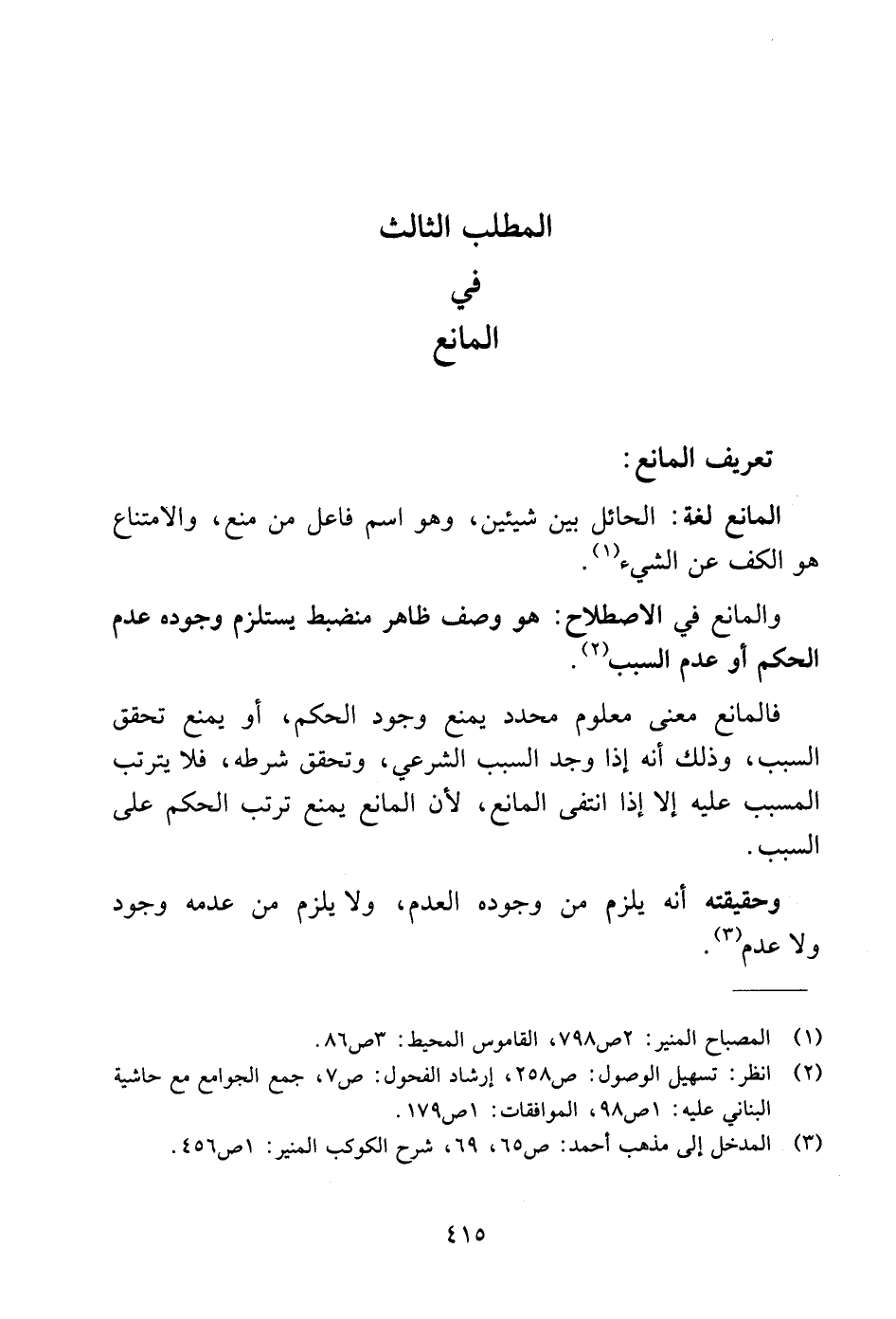 المطلب الثالث في المانع