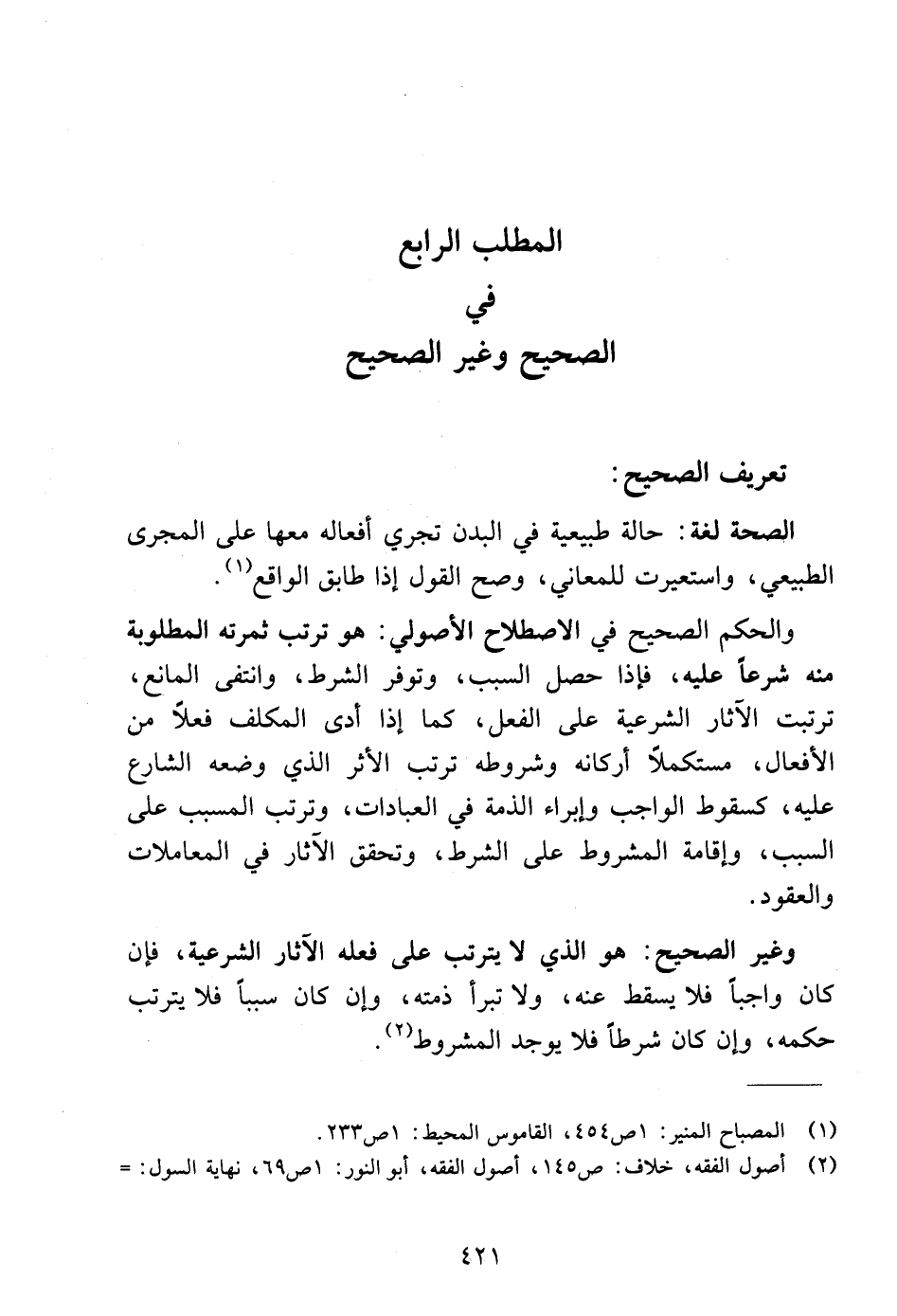 المطلب الرابع في الصحيح وغير الصحيح