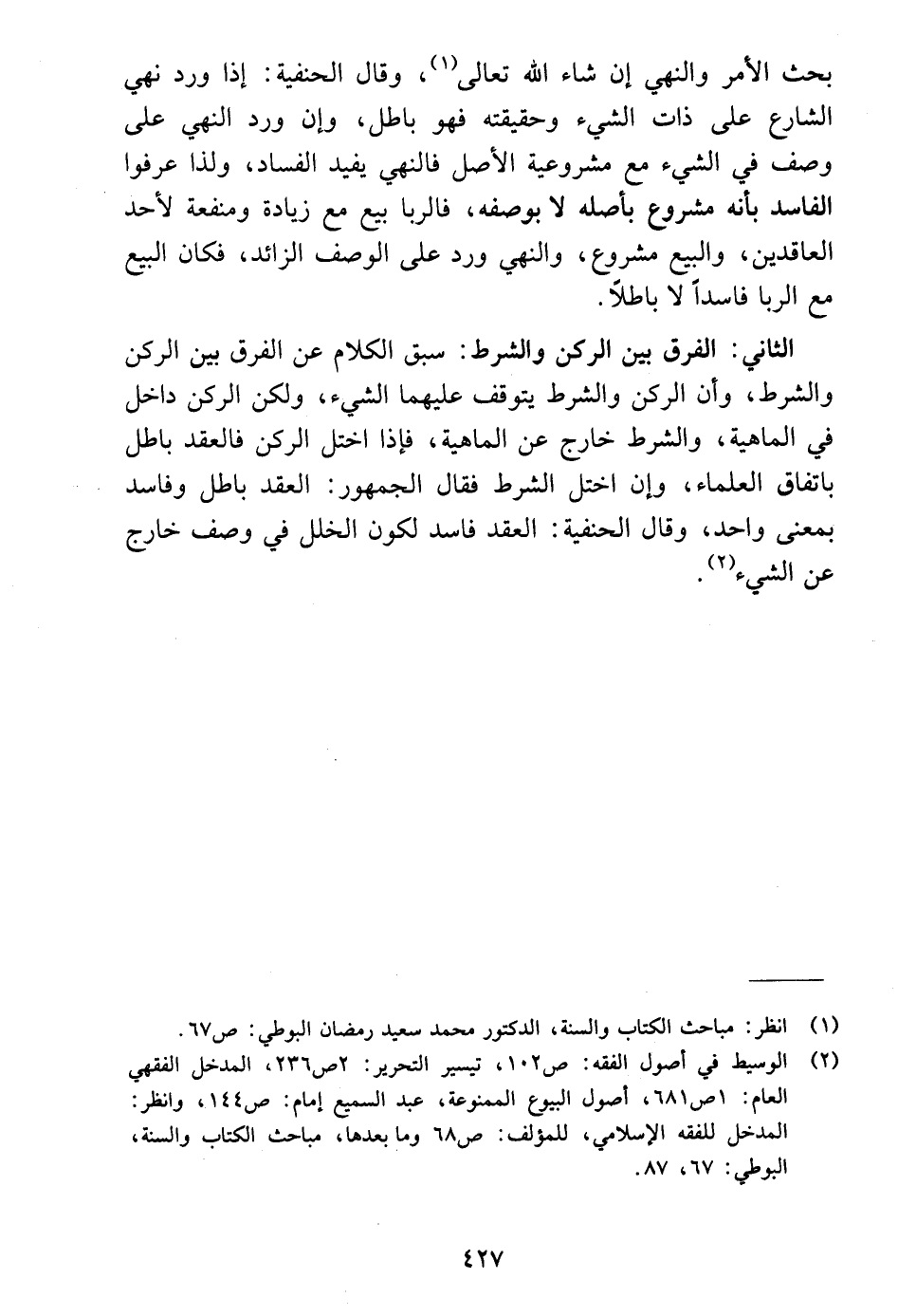 (٢) الوسيط في أصول الفقه: ص ١٠٢، تيسير التحرير: ٢ ص ٢٣٦، المدخل الفقهي العام: ١ ص ٦٨١، أصول البيوع الممنوعة، عبد السميع إمام: ص ١٤٤، وانظر: المدخل للفقه الإسلامي، للمؤلف: ص ٦٨ وما بعدها، مباحث الكتاب والسنة، البوطي: ٦٧، ٨٧.