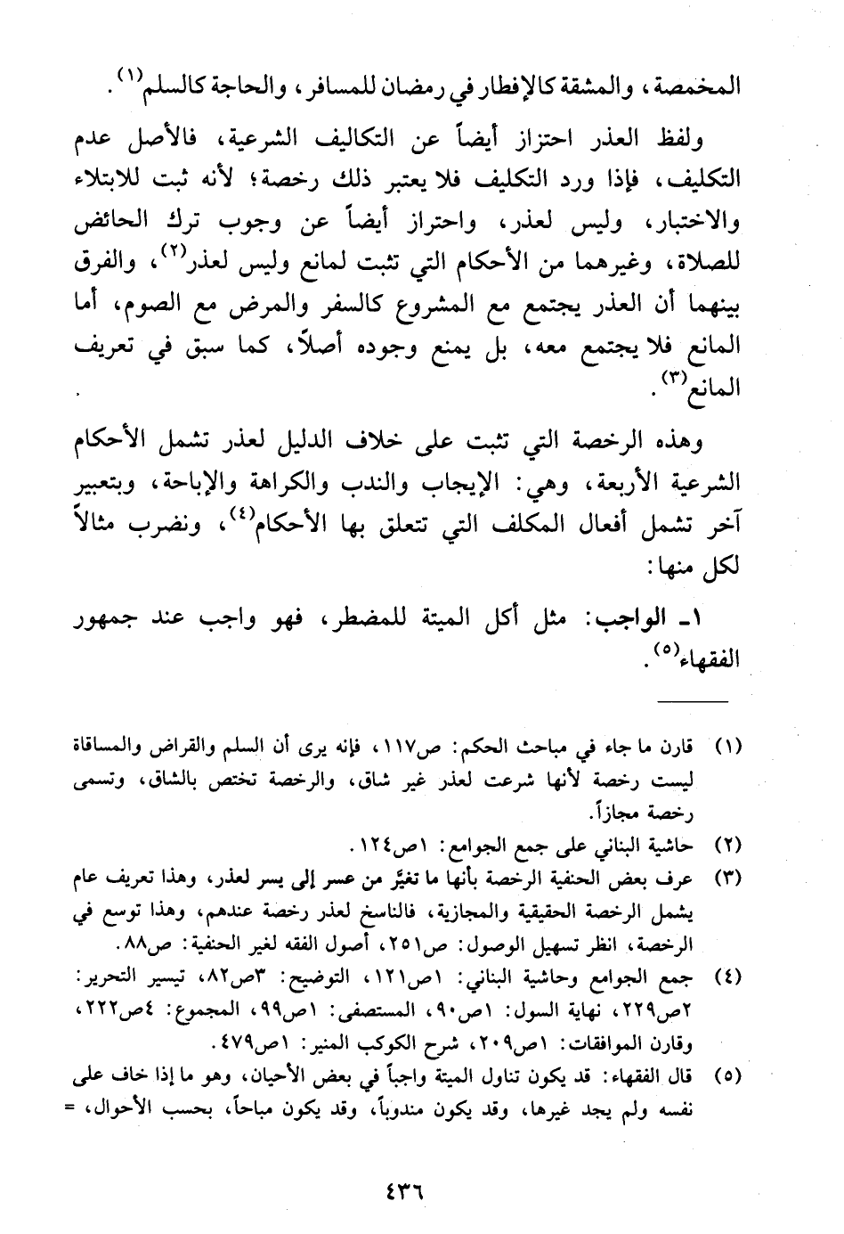 (٣) عرف بعض الحنفية الرخصة بأنها ما تغيَّر من عسر إلى يسر لعذر، وهذا تعريف عام يشمل الرخصة الحقيقية والمجازية، فالناسخ لعذر رخصة عندهم، وهذا توسع في الرخصة، انظر تسهيل الوصول: ص ٢٥١، أصول الفقه لغير الحنفية: ص ٨٨.