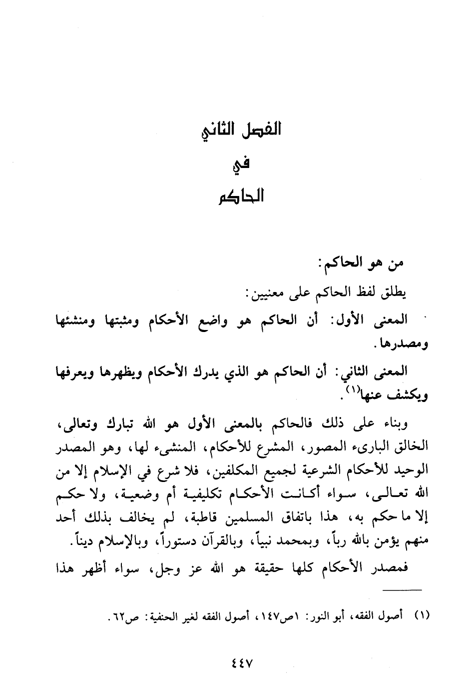 المعنى الأول: أن الحاكم هو واضع الأحكام ومثبتها ومنشئها ومصدرها.